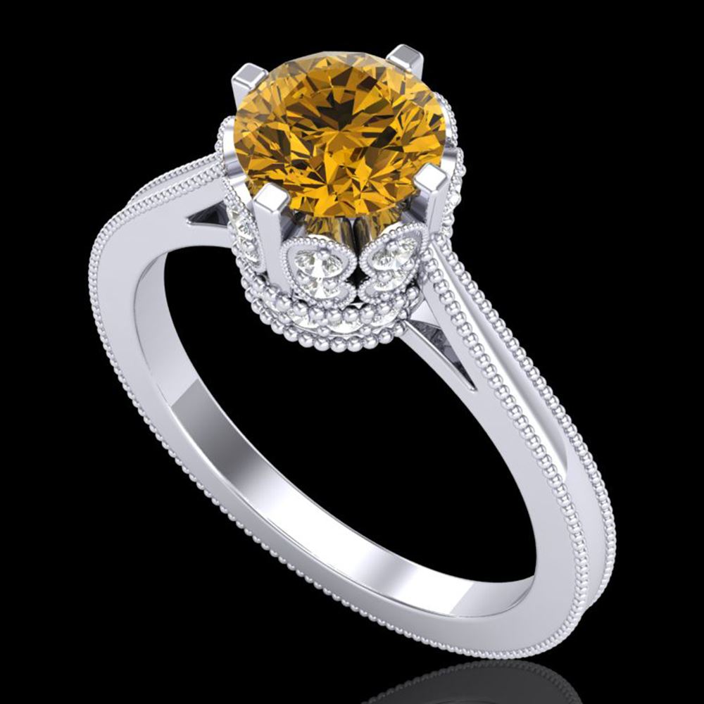 REF-209G3W - SKU: 37350 ---- 1.5 ctw Intense Fancy Yellow Diamond Art Deco Ring 18k White Gold