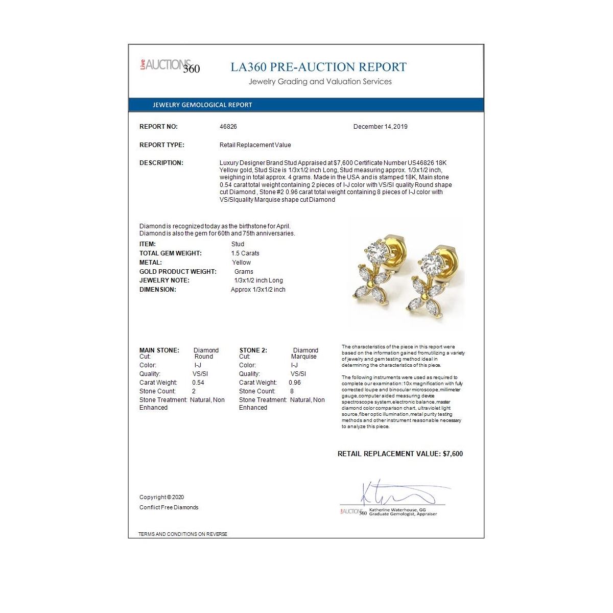 REF-197M8G - SKU: 46826 ---- 1.5 ctw Marquise Cut Diamond Designer Earrings 18K Yellow Gold