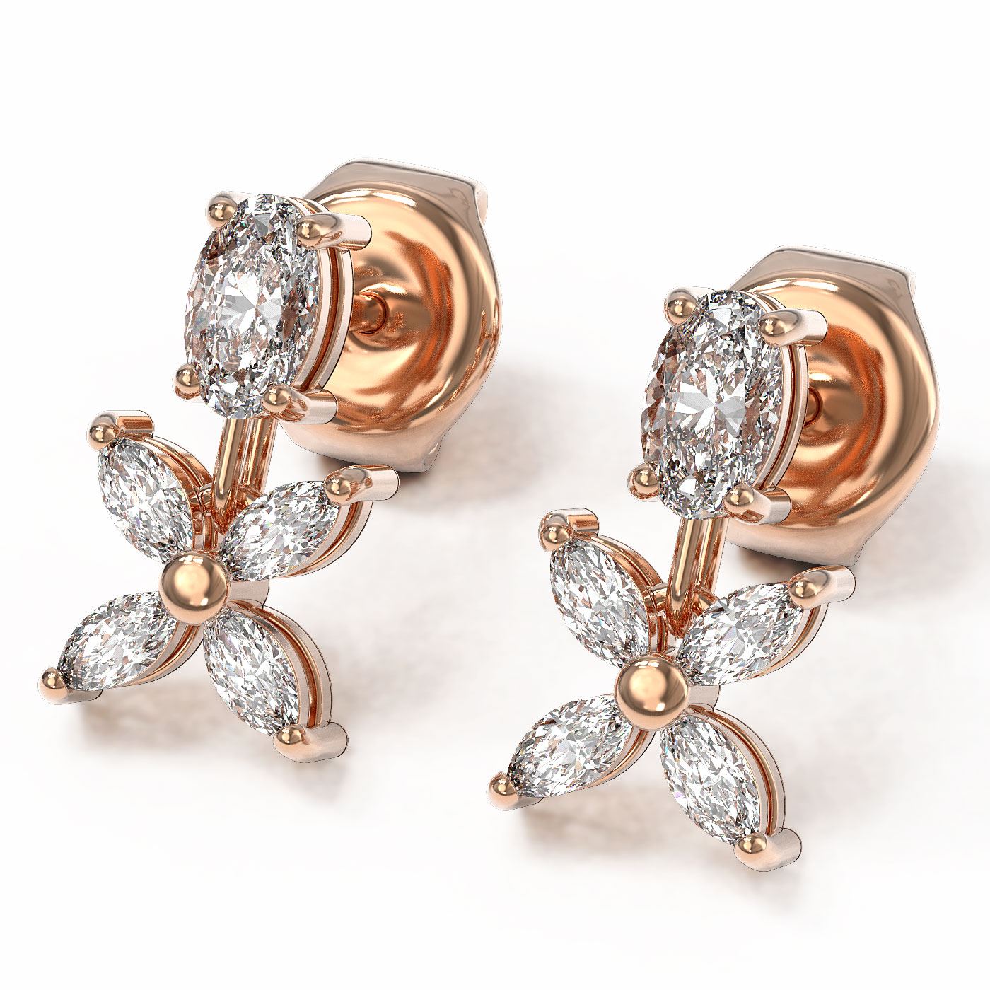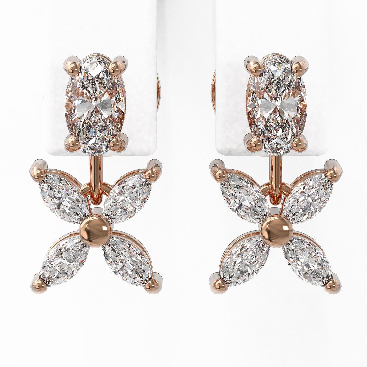 REF-202Y8X - SKU: 46813 ---- 1.5 ctw Oval & Marquise Cut Diamond Earrings 18K Rose Gold