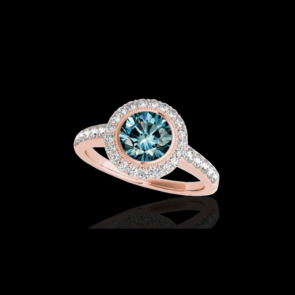 1.5 ctw SI Certified Fancy Blue Diamond Solitaire Halo Ring 10K Rose Gold