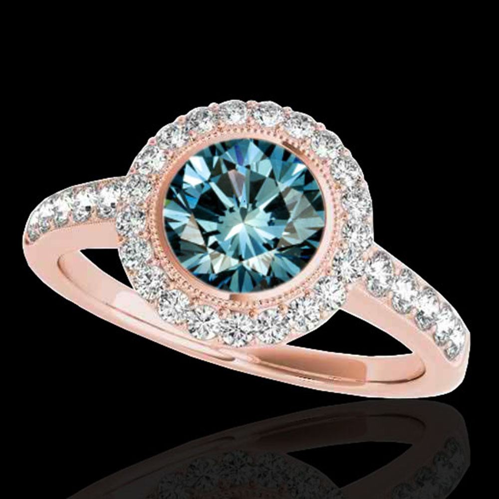 REF-135H2R - SKU: 34447 ---- 1.5 ctw SI Certified Fancy Blue Diamond Solitaire Halo Ring 10k Rose Gold