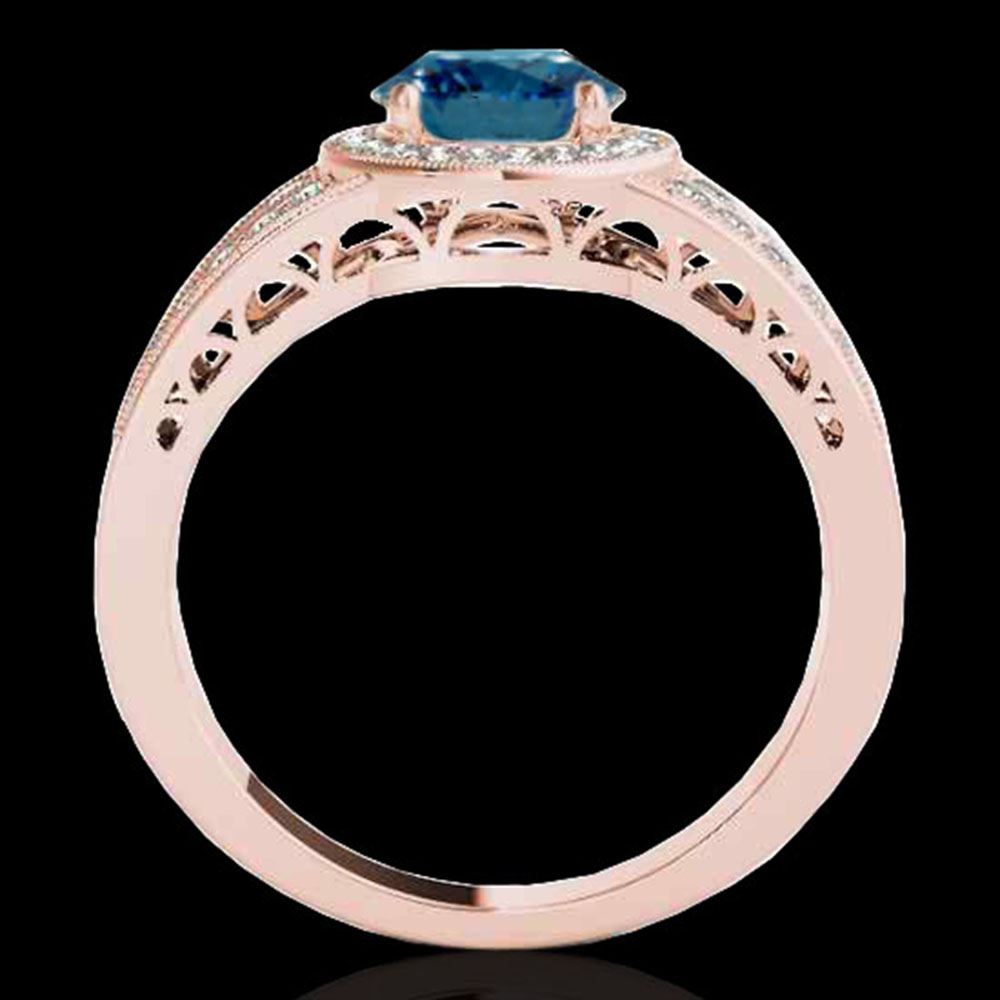 REF-135W2H - SKU: 34075 ---- 1.5 ctw SI Certified Fancy Blue Diamond Solitaire Halo Ring 10k Rose Gold