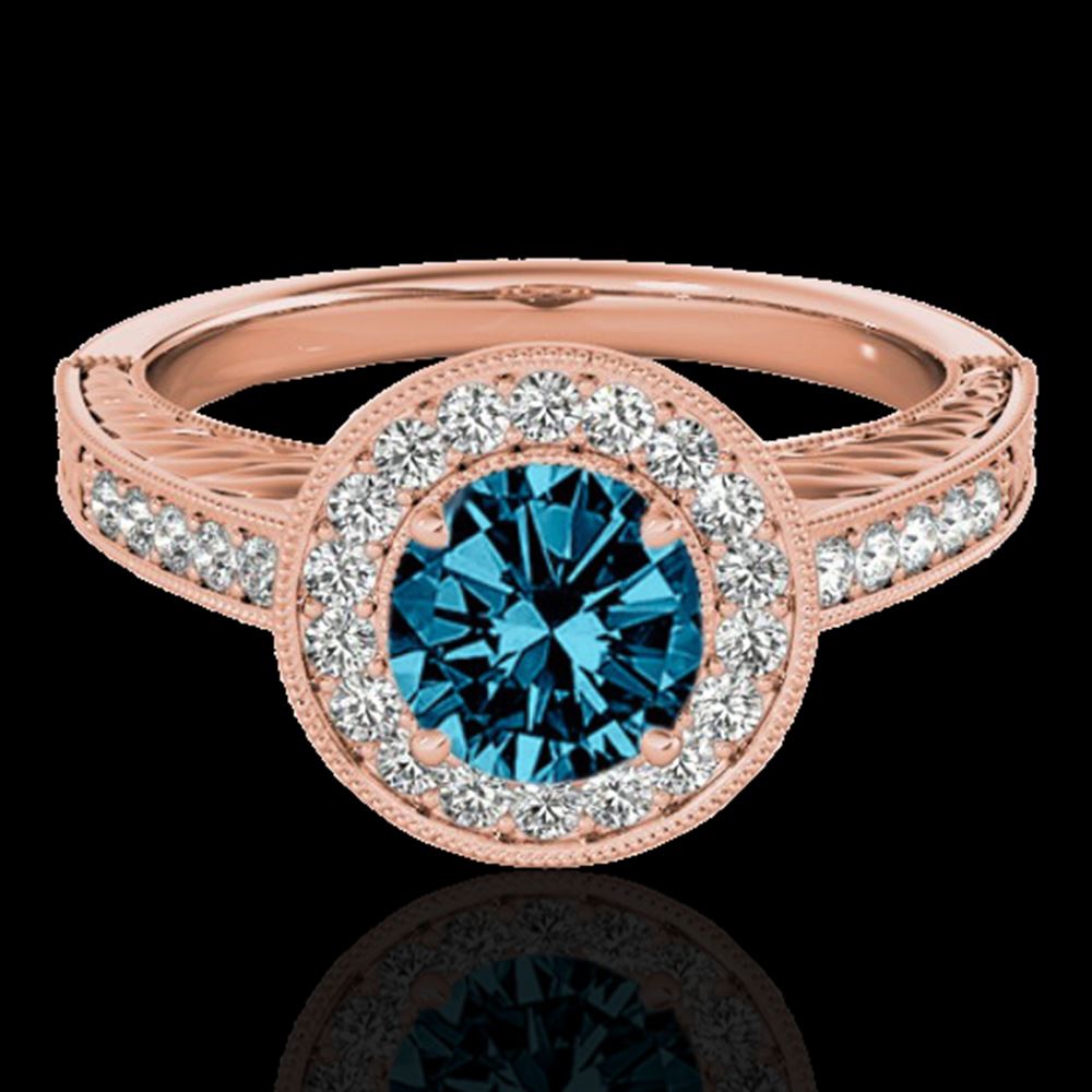 REF-150H2R - SKU: 33748 ---- 1.5 ctw SI Certified Fancy Blue Diamond Solitaire Halo Ring 10k Rose Gold