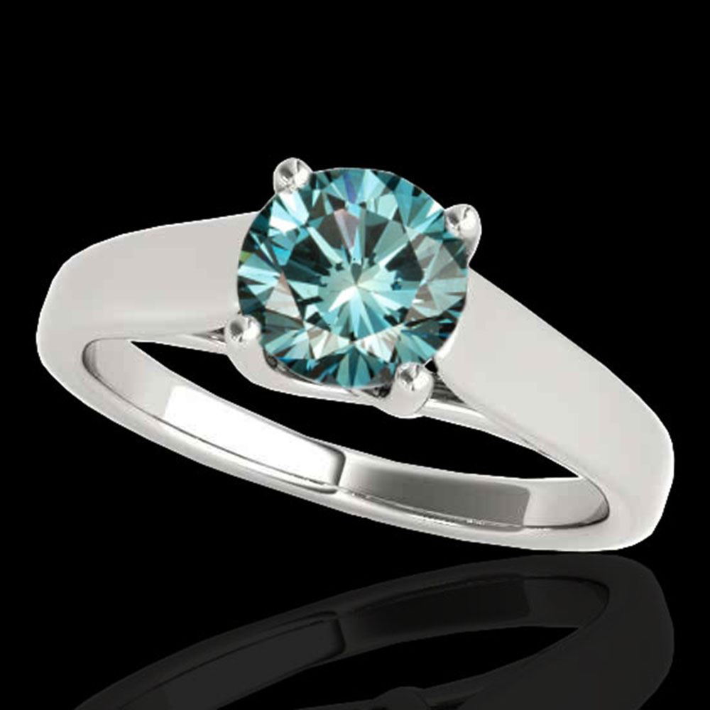 REF-218X2A - SKU: 35539 ---- 1.5 ctw SI Certified Fancy Blue Diamond Solitaire Ring 10k White Gold