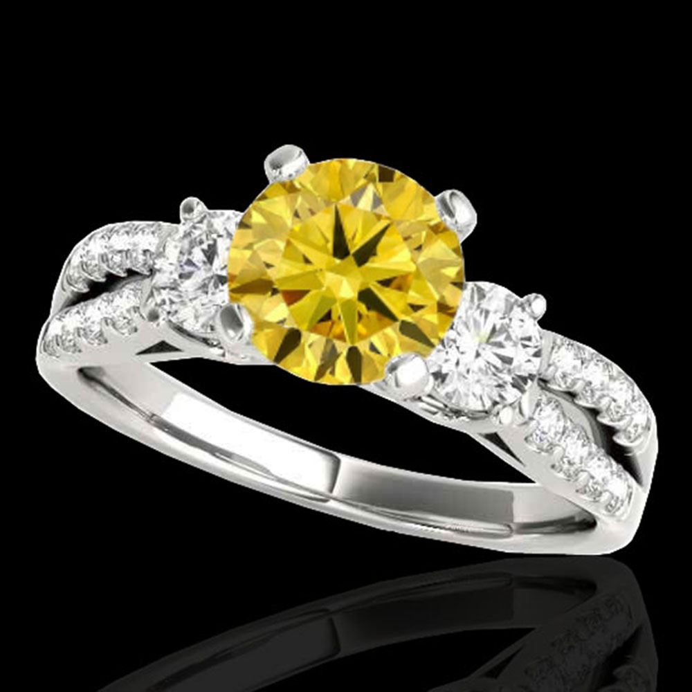 REF-204F5M - SKU: 35410 ---- 1.5 ctw SI/I Fancy Intense Yellow Diamond 3 Stone Ring 10k White Gold