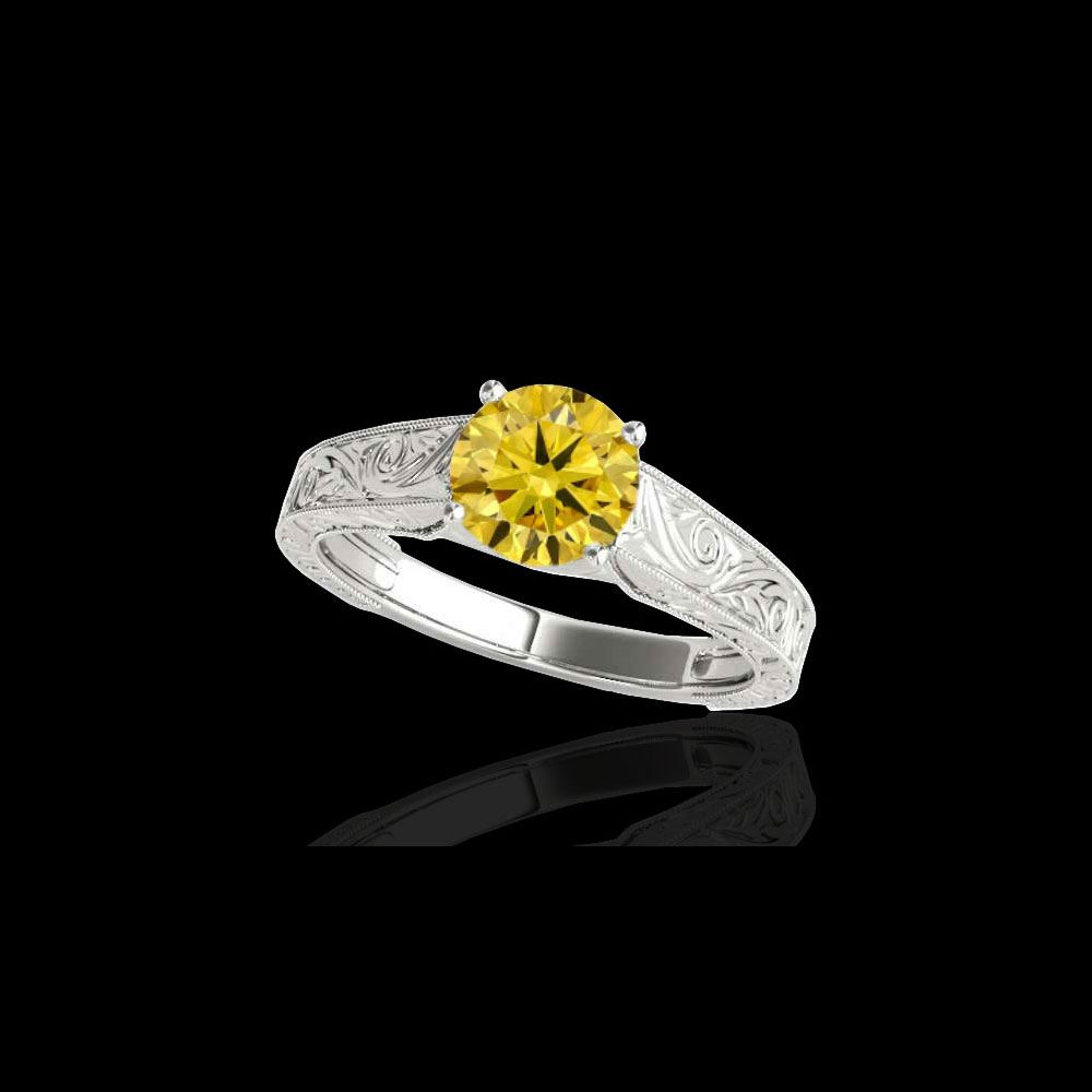 1.5 ctw SI/I Fancy Intense Yellow Diamond Antique Ring 10K White Gold