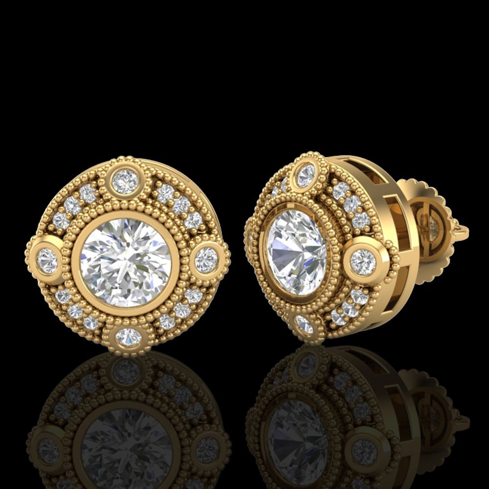 REF-263K6Y - SKU: 36982 ---- 1.5 ctw VS/SI Diamond Solitaire Art Deco Stud Earrings 18k Yellow Gold