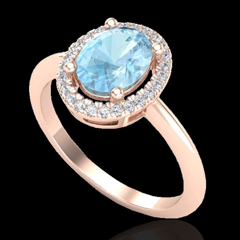 REF-47H8A -21000 ---- 1.50 CTW Aquamarine & Micro VS/SI Diamond Ring Solitaire Halo 14K Rose Gold ---- Luxury Designer Brand Ring Appraised at $3,400 Certificate Number US21000 14k Rose gold, Ring Size is 7, Ring measuring approx. 1/2" X 1/2" , weighing in total approx. 3.5 grams. Made in the USA and is stamped 14k, Main stone 1.27 carat total weight containing 1 pieces of Translucent Medium Blue color with AAA quality Oval shape cut Aquamarine , Stone #2 0.23 carat total weight containing 27 pieces of H-I color with VS/SI quality Round shape cut Diamond