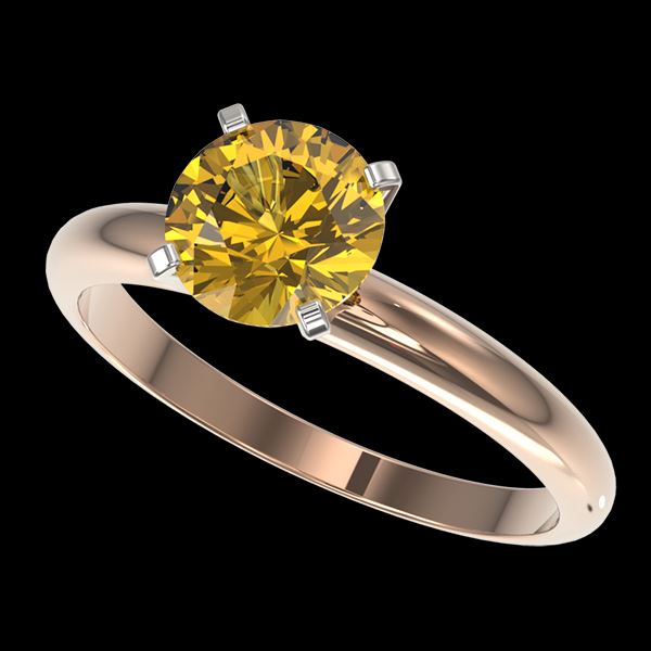 REF-345M5H -32931 ---- 1.50 CTW Certified Intense Yellow SI Diamond Solitaire Ring 10K Rose Gold ---- Luxury Designer Brand Ring Appraised at $20,900 Certificate Number US32931 10k Rose gold, Ring Size is 7, Ring measuring approx. Uniform, weighing in total approx. 3.4 grams. Made in the USA and is stamped 10k, Main stone 1.5 carat total weight containing 1 pieces of Intense Fancy Yellow color with SI quality Round shape cut Diamond , Stone #2 carat total weight containing pieces of color with quality shape cut