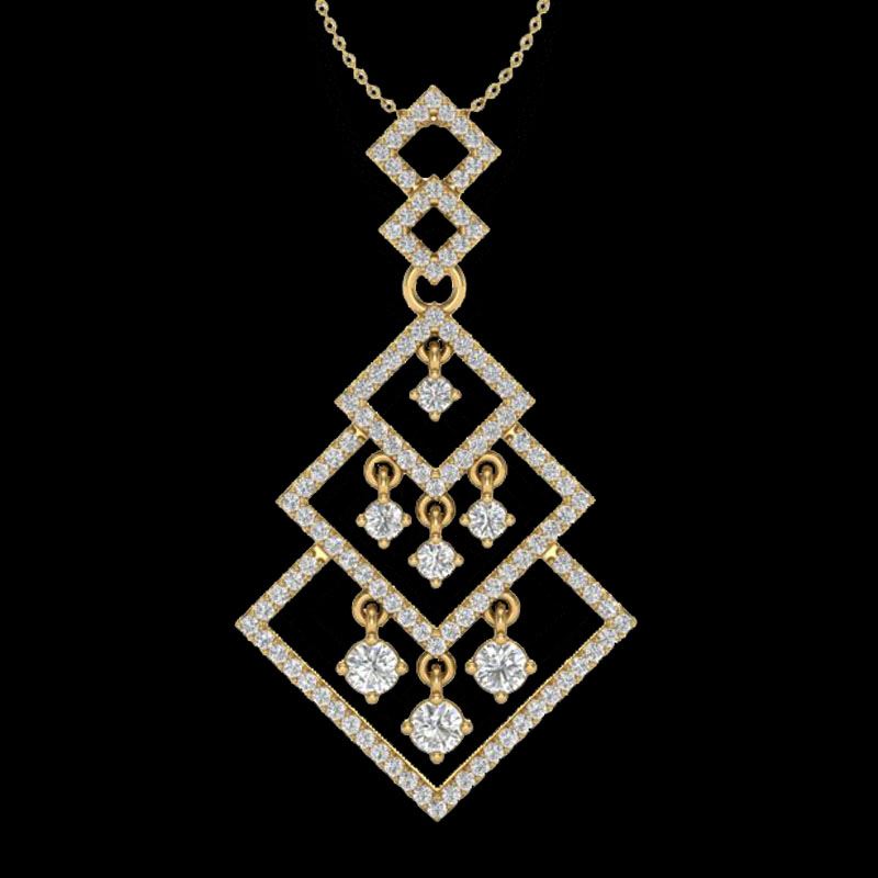 REF-168Y2K -22495 ---- 1.50 CTW Micro Pave VS/SI Diamond Necklace Dangling 14K Yellow Gold ---- Luxury Designer Brand Necklace Appraised at $9,250 Certificate Number US22495 14k Yellow gold, Necklace Size is 16 Inches, Necklace measuring approx. 1 3/4" x 1" , weighing in total approx. 7.4 grams. Made in the USA and is stamped 14k, Main stone 0.75 carat total weight containing 91 pieces of H-J color with VS/SI quality Round shape cut Diamond , Stone #2 0.75 carat total weight containing 7 pieces of H-I color with VS/SI quality Round shape cut Diamond