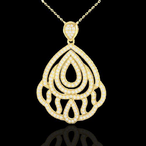 REF-154M8H -21282 ---- 1.50 CTW Micro Pave VS/SI Diamond Necklace Designer 18K Yellow Gold ---- Luxury Designer Brand Necklace Appraised at $8,500 Certificate Number US21282 18k Yellow gold, Necklace Size is 16 Inches, Necklace measuring approx. 1 1/2" X 1" , weighing in total approx. 9.6 grams. Made in the USA and is stamped 18k, Main stone 1.5 carat total weight containing 172 pieces of H-J color with VS/SI quality Round shape cut Diamond , Stone #2 carat total weight containing pieces of color with quality shape cut