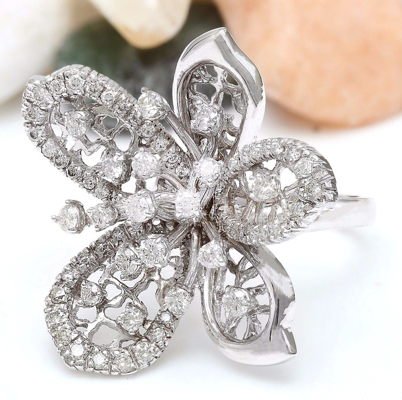 1.50 Carat Natural Diamond 14K Solid White Gold Ring