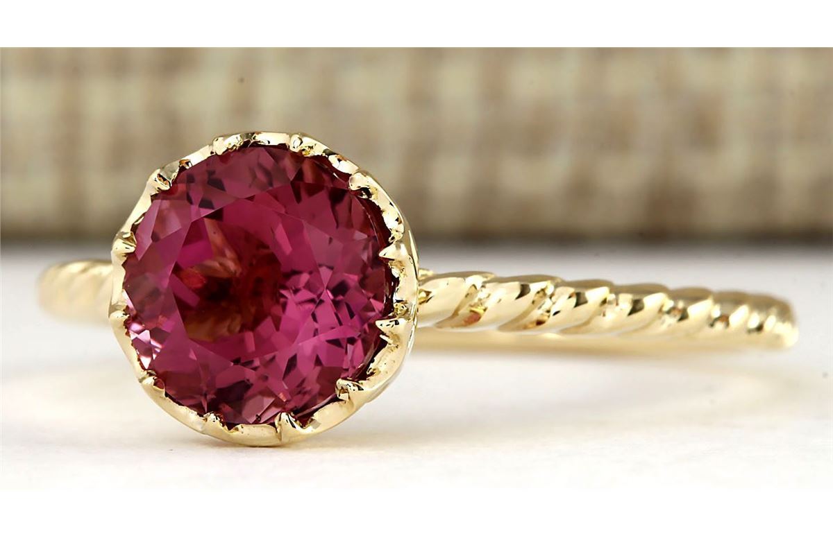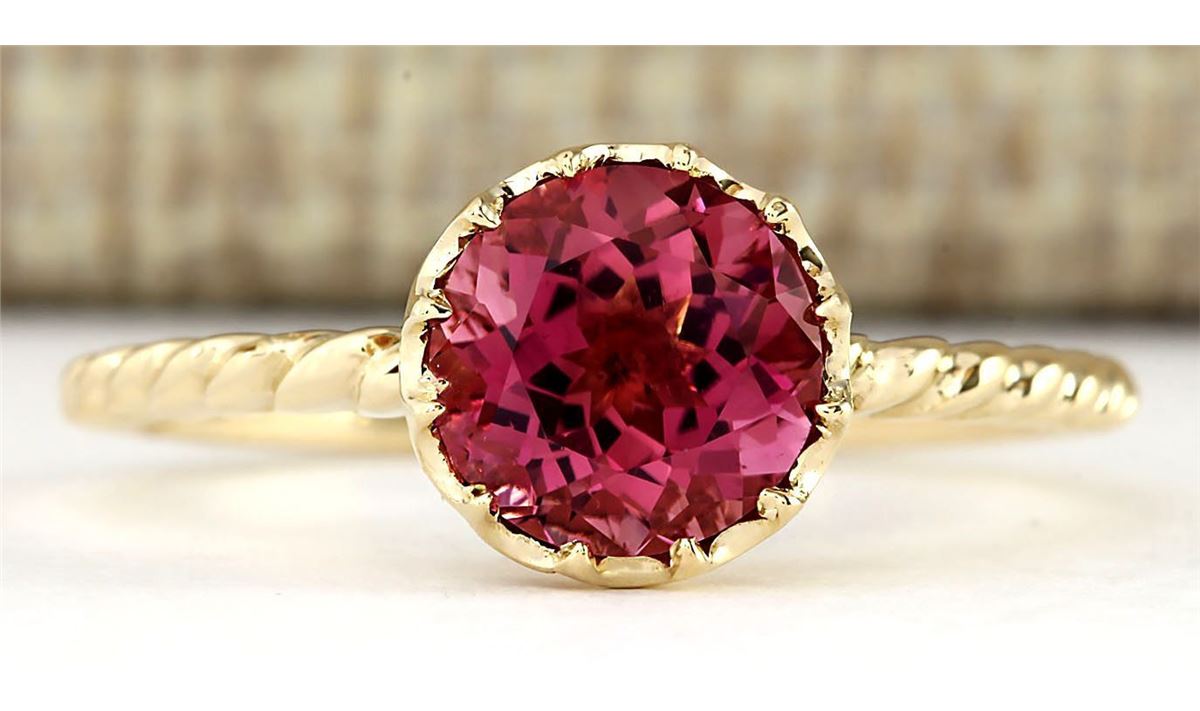 Stamped: 14K Ring Size: 6.75 Total Ring Weight: 1.8 Grams Gemstone Weight: Total Natural Tourmaline Weight is 1.50ctw Main Stone Color: Pink Face Measures: 8.10x8.20mm SKU: [703265]