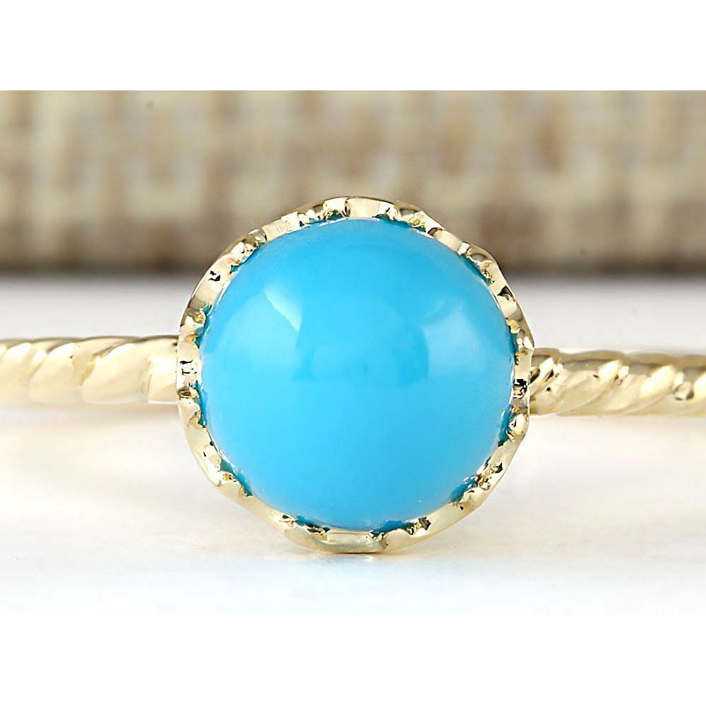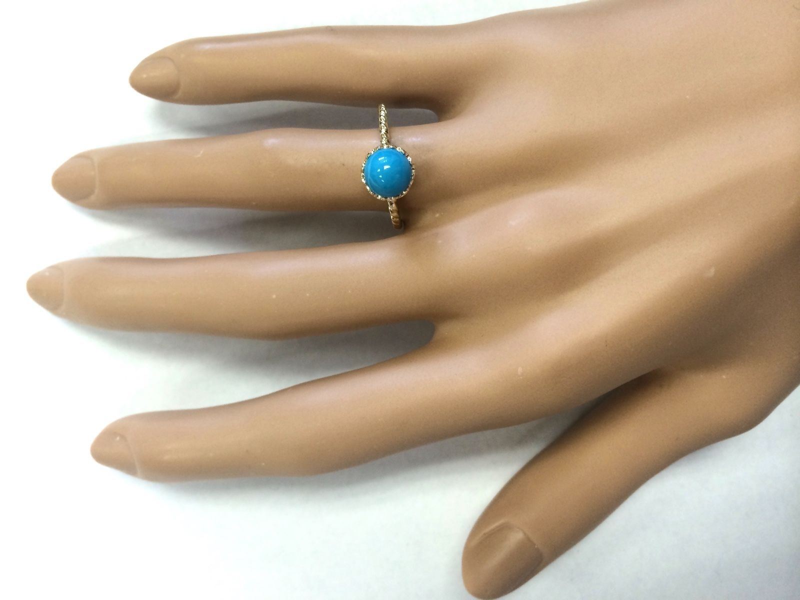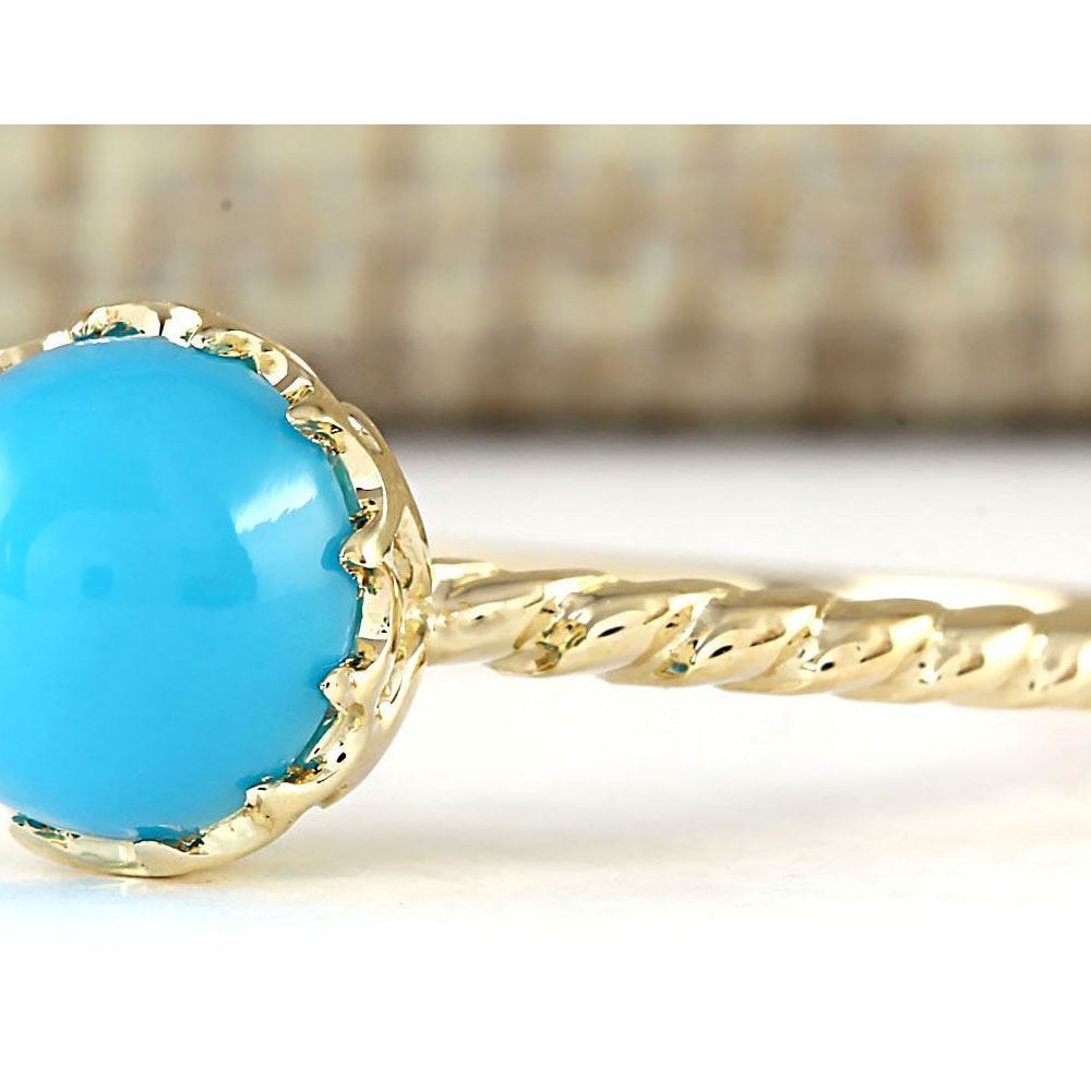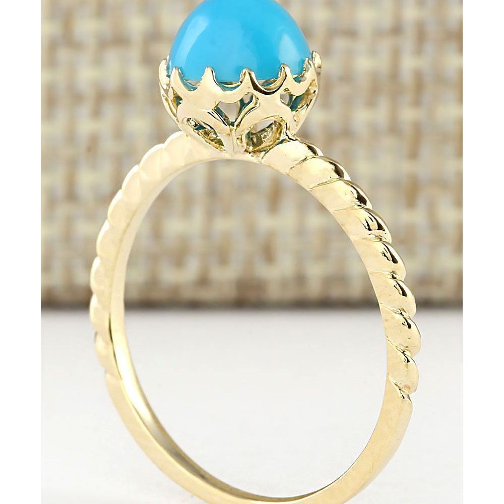 1.50 CTW Natural Turquoise Ring In 18K Yellow Gold