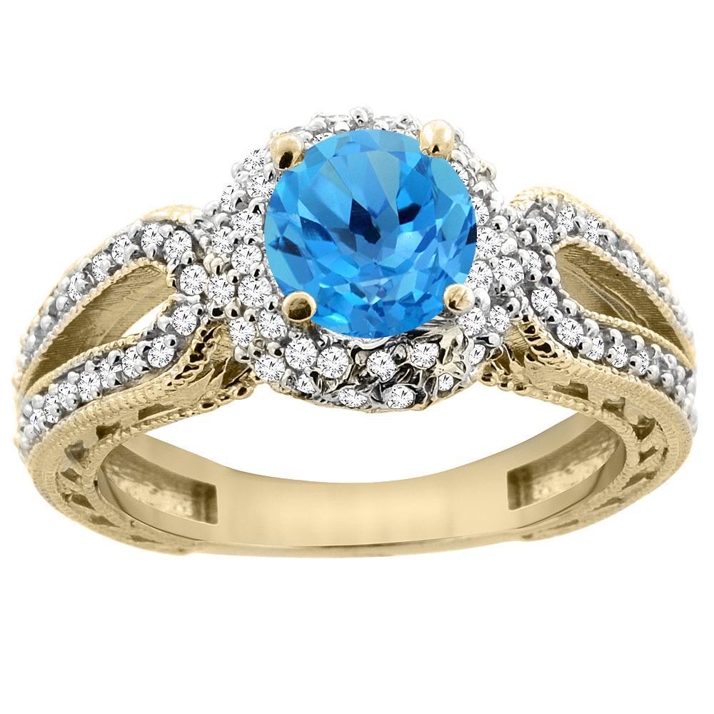 REF-86A9X - SKU: SC-CY404291 ---- 1.50 CTW Swiss Blue Topaz & Diamond Ring 14K Yellow Gold
