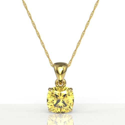 REF-24M2H -21939 ---- 1.50 Cushion Cut CTW Citrine Designer Solitaire Necklace 18K Yellow Gold ---- Luxury Designer Brand Necklace Appraised at $1,450 Certificate Number US21939 18k Yellow gold, Necklace Size is 16 Inches, Necklace measuring approx. 9 mm x 9 mm, weighing in total approx. 2.6 grams. Made in the USA and is stamped 18k, Main stone 1.5 carat total weight containing 1 pieces of Translucent Yellow color with AAA quality Cushion shape cut Citrine , Stone #2 carat total weight containing pieces of color with quality shape cut