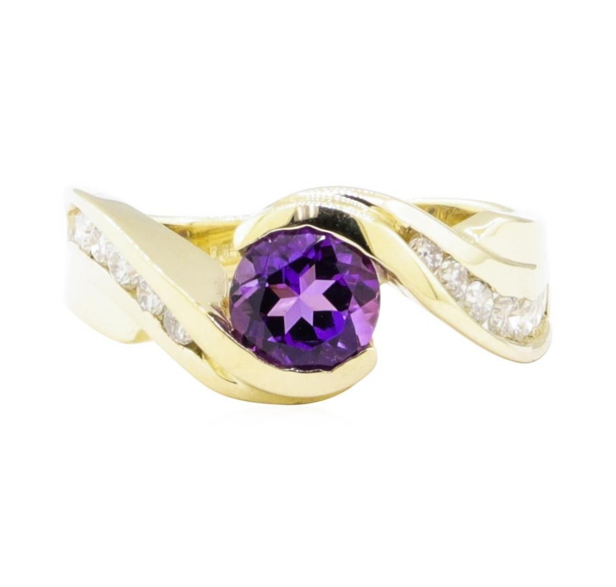 One ring featuring: 14KT yellow gold weighing 5.5 grams containing one amethyst weighing 1.00ct and diamonds weighing 0.50ctw.