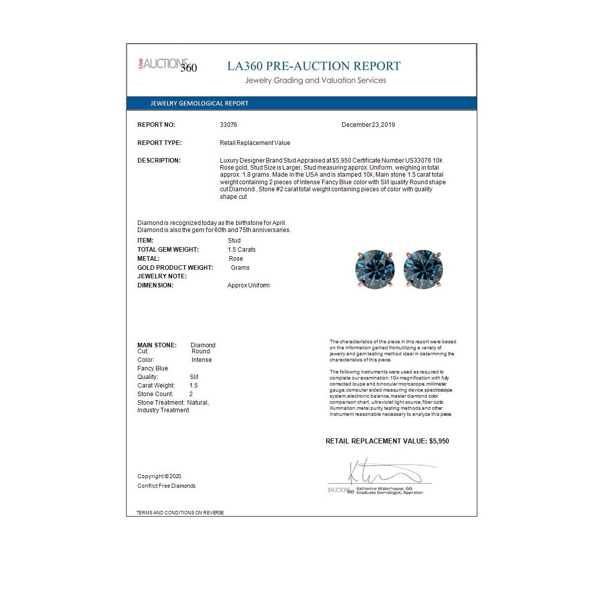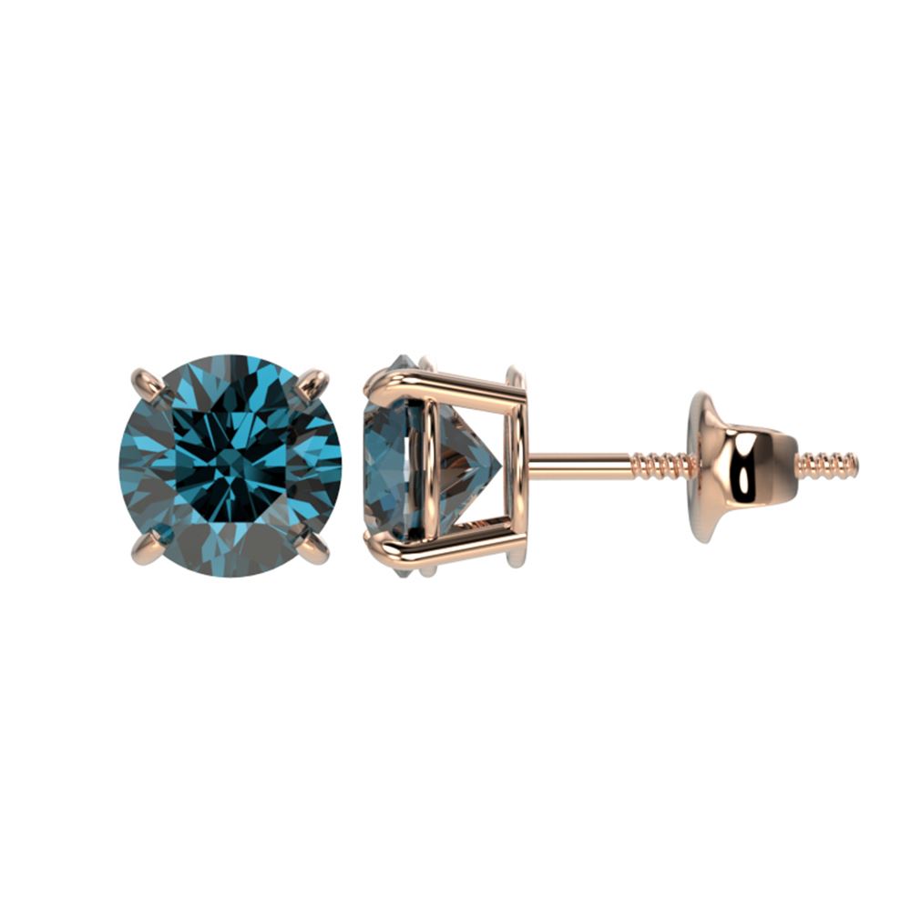 REF-104F3M - SKU: 33076 ---- 1.50 ctw Certified Intense Blue Diamond Stud Earrings 10k Rose Gold