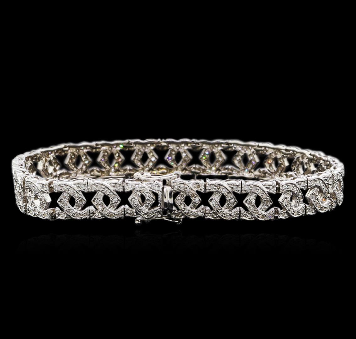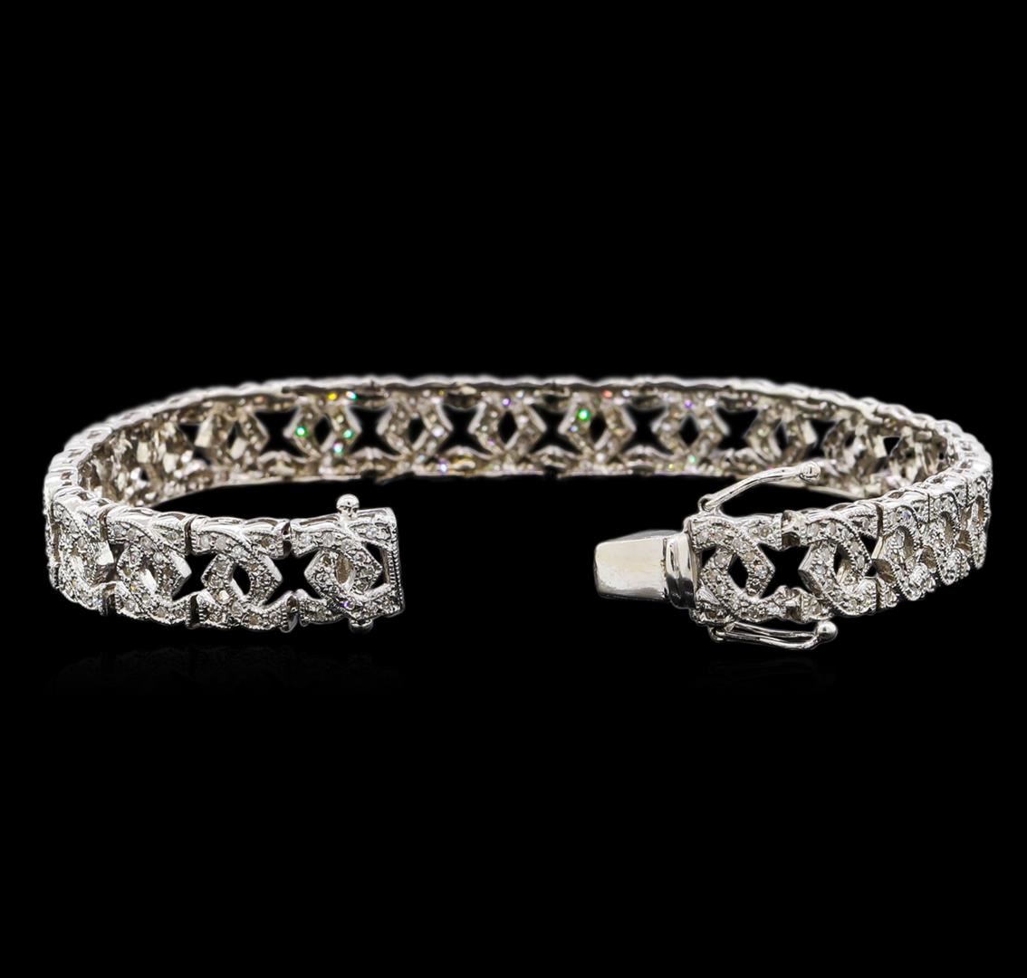 One 14KT white gold bracelet weighing 14.4 grams containing diamonds with VS2-SI2 clarity and H-J color weighing 1.50ctw. GGA Appraised at $3,940.00.