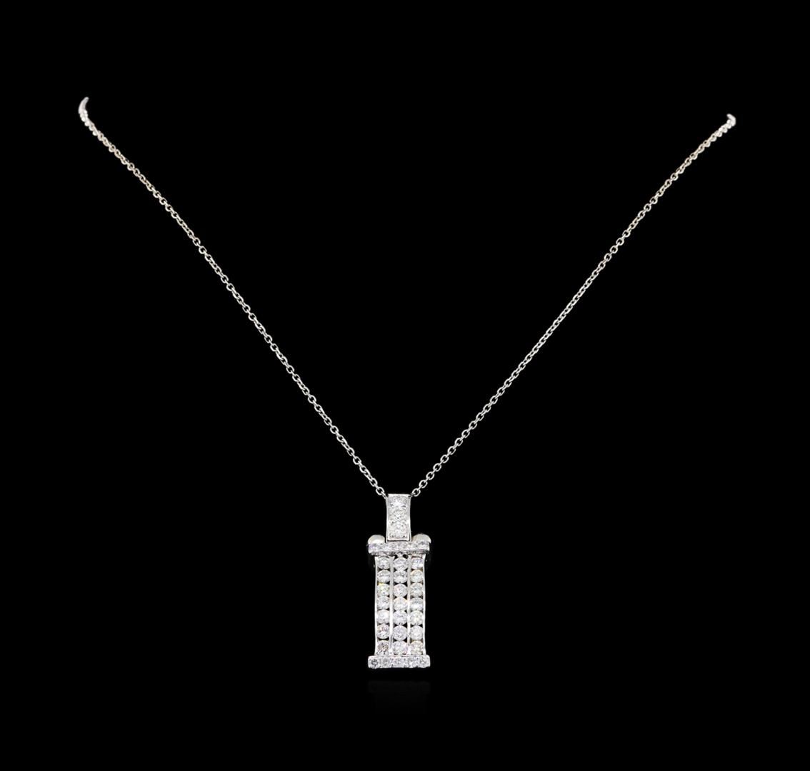 One 14KT white gold pendant and chain weighing 9.3 grams containing round brilliant cut diamonds with VS2-SI1 clarity and G-H color weighing 1.50ctw. GGA Appraised at $2,890.00.