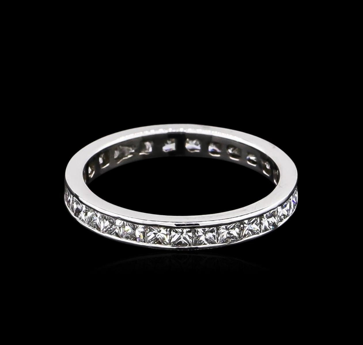 Platinum 1.5CT Diamond Ring. Description: Metal: 14k platinum. Face Measurements: 3mm. Size: 4.5. Shank Width: 3mm. Finish: bright polish. Total Item Weight: 2 grams. Main Stone: diamond. Quantity: 28. Shape: princess. Color: white. Carat Total Weight: 1.5. Measurements: 2 x 2mm. Treatment: none. Setting: channel. Color Grade: G-H. Clarity: VS1-VS2. Cut: very good. Excellent Workmanship. Gemstones graded in the mounting. BHGL Appraised.