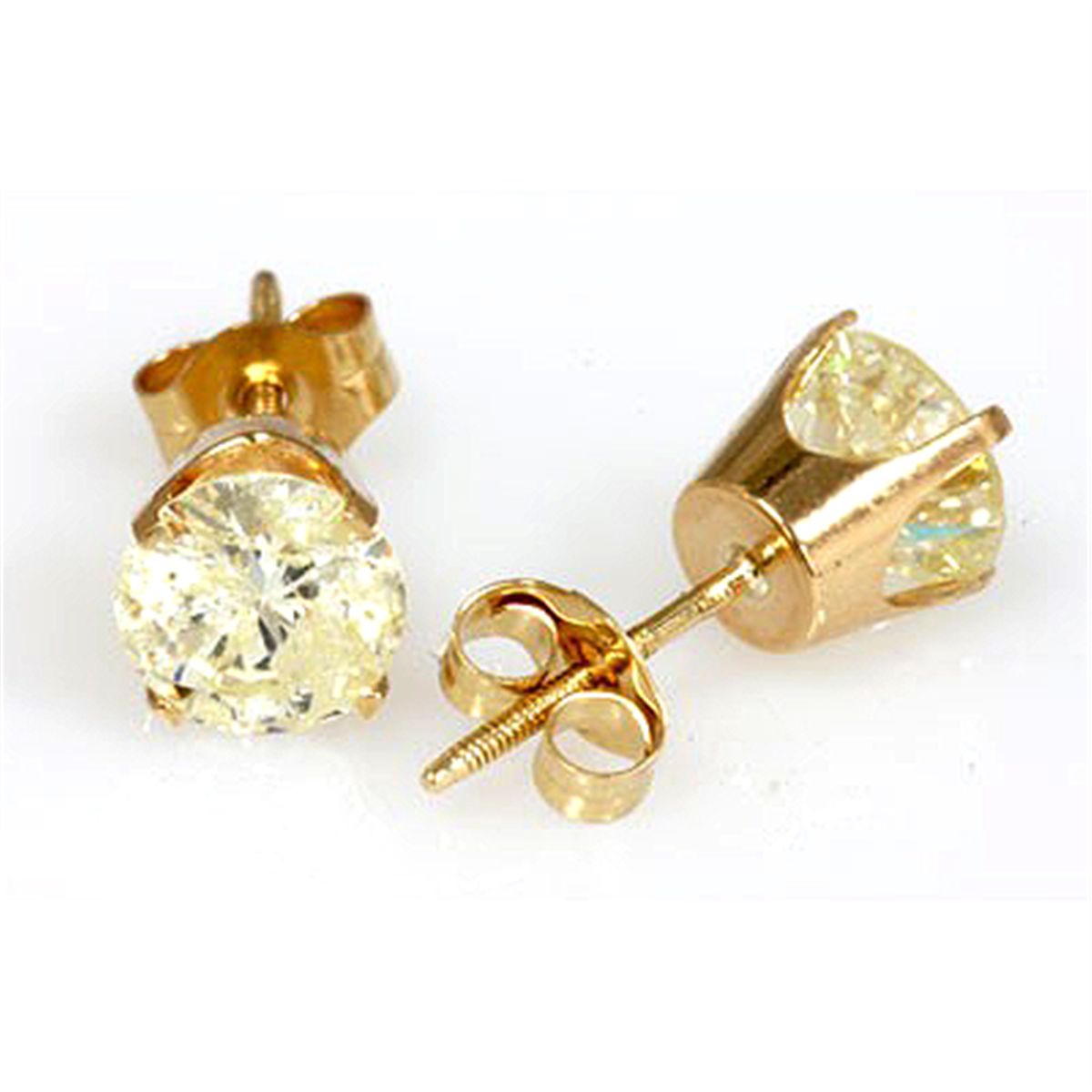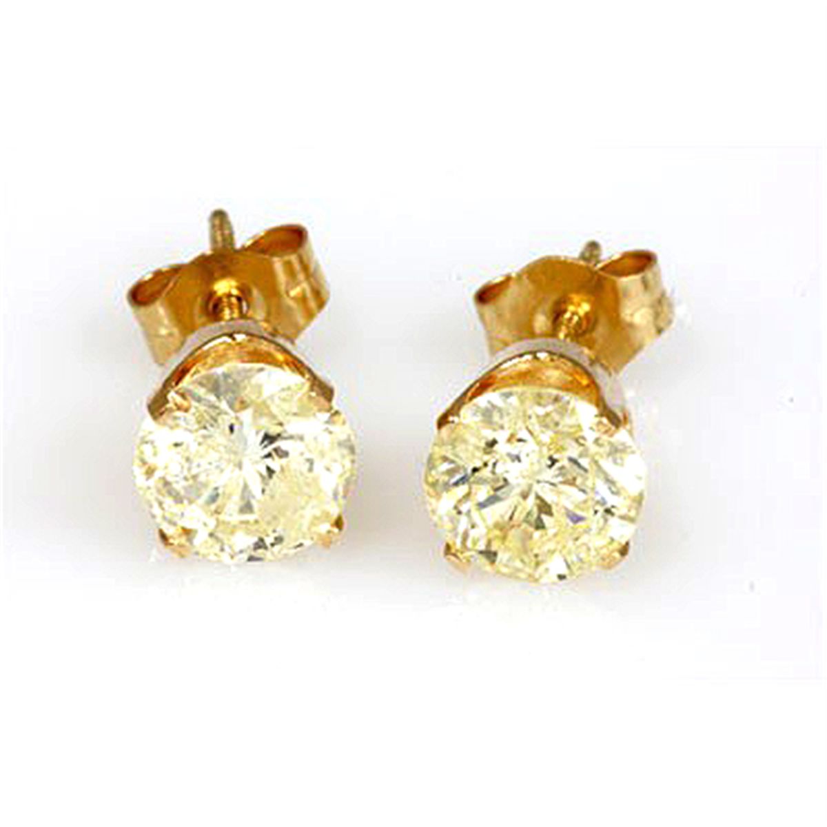 1.50 ctw Diamond Stud Earring 14KT Y/Gold I1 ? C2 Diamond count: 2 Round Cut ; Diamond weight: 1.50 ctw Diamond color: C2 ; Diamond clarity: I1 ; Metal: 14K Yellow Gold, Availability: 3 Business days, ready to ship ; with Certified Appraisal $5251, 1.20g ; MSRP: $4668