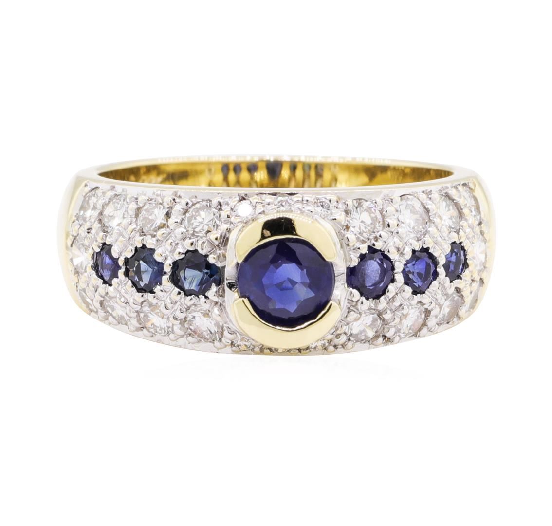 One lady's ring featuring: 14KT yellow gold weighing 7.3 grams containing sapphires weighing 0.80ctw and diamonds weighing 0.70ctw.