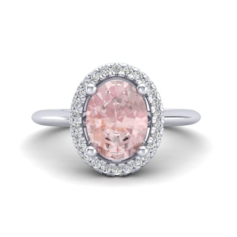 REF-53M2G - SKU: 21015 ---- 1.50 ctw Morganite & Micro VS/SI Diamond Ring Halo 18k White Gold