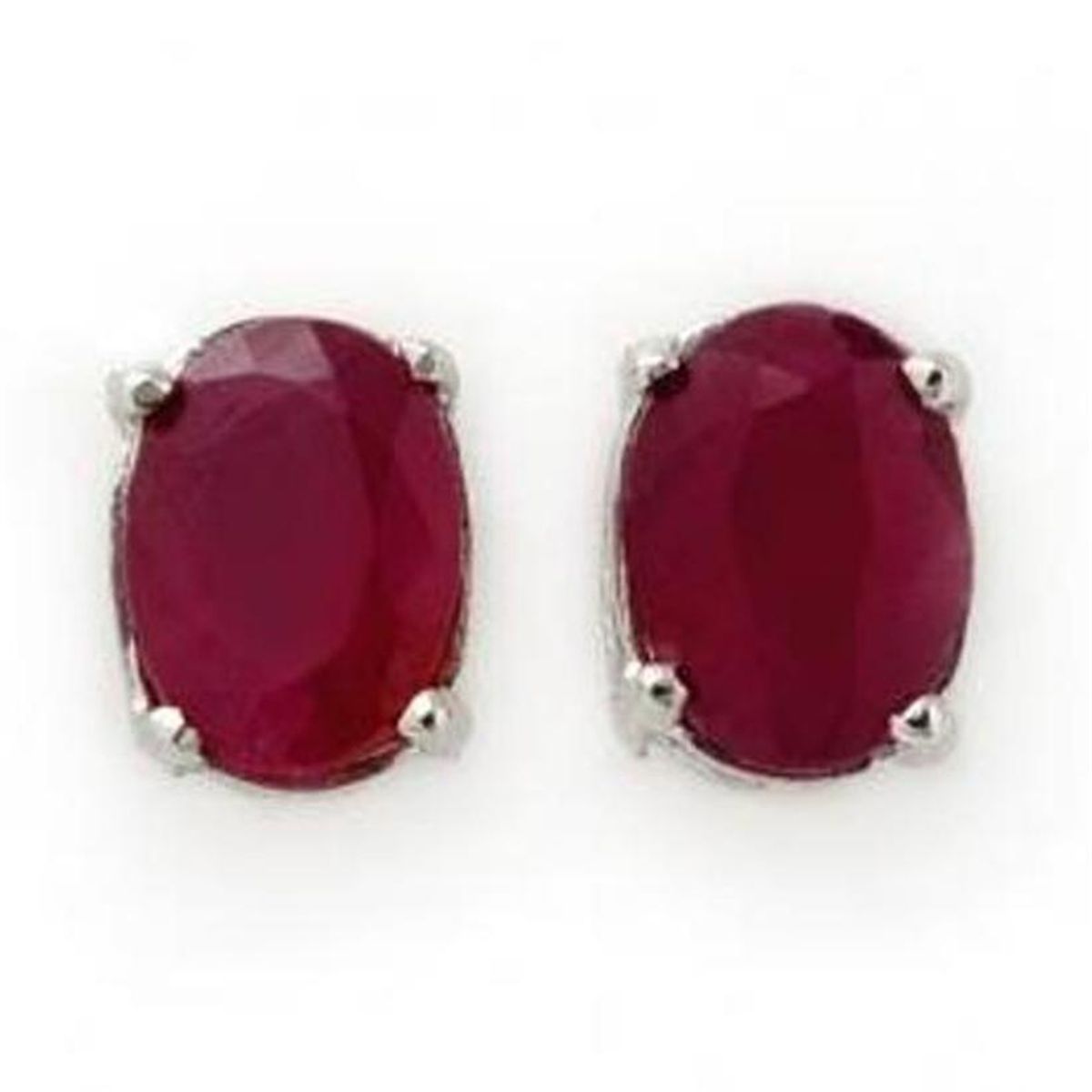 Gemstone: Natural Ruby Gemstone color: Red Gemstone quality: Good-to-Very Good Gemstone Cut & Weight: 2 Oval cut @ 1.50 ctw Metal Purity & Color : 14K Gold-WhiteGold weight: 1.50 grams Dimension: Approx. 3/16" x 1/4"