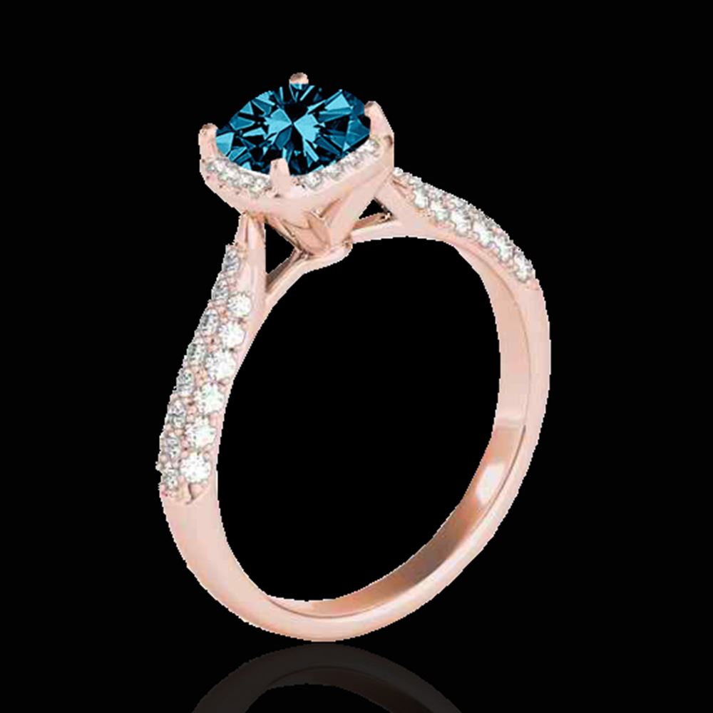 REF-133M2G - SKU: 33264 ---- 1.50 ctw SI Certified Fancy Blue Diamond Solitaire Halo Ring 10k Rose Gold