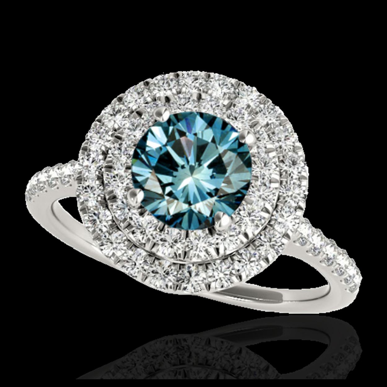 1.50 ctw SI Fancy Blue Diamond Solitaire Halo Ring 10K White Gold