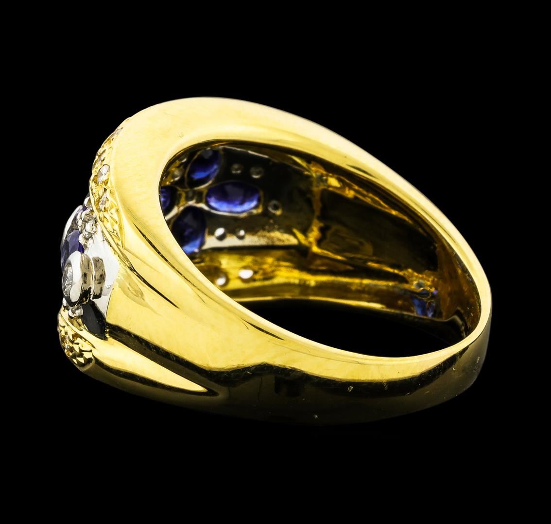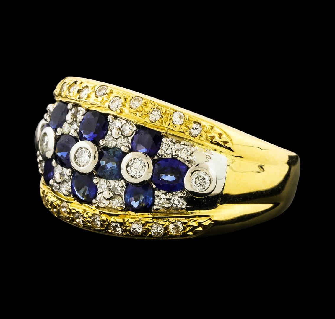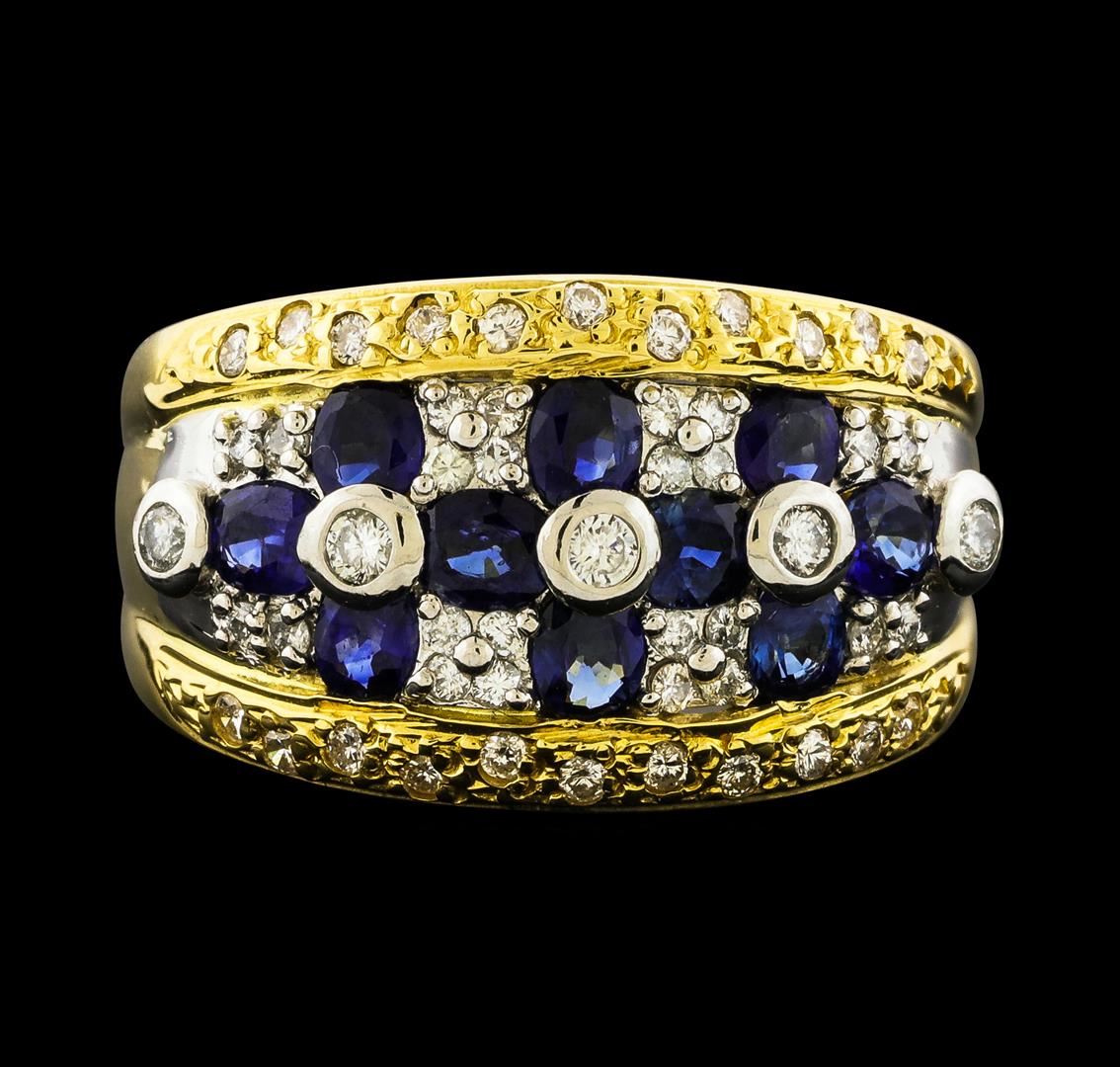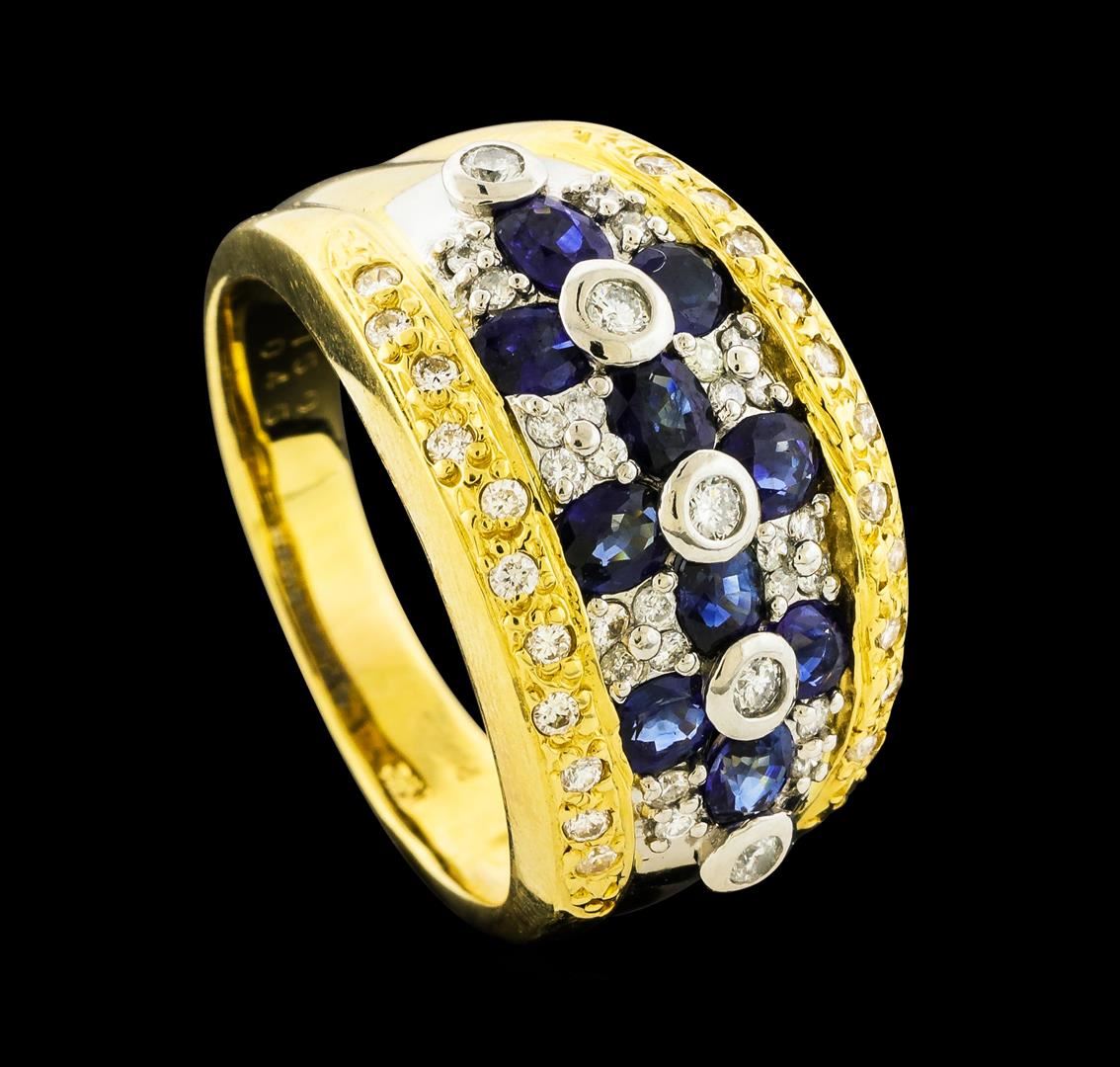 One ring featuring: 18KT Yellow Gold and Platinum containing Sapphire with a total weight of 1.50ct and Diamonds with a total weight of 0.45ct. Total Weight of Ring: 8.7 grams.