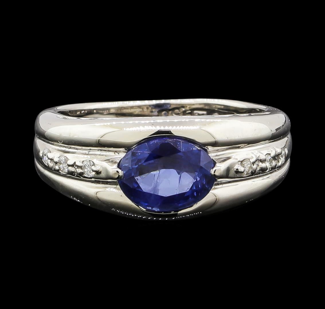 One ring featuring: Platinum containing Sapphire with a total weight of 1.50ct and Diamonds with a total weight of 0.08ct. Total Weight of Ring: 7.4 grams.