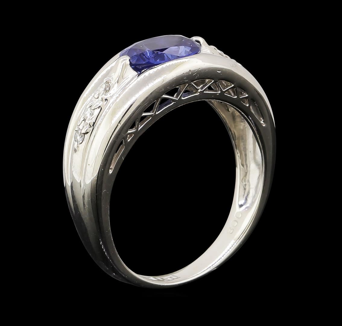 One ring featuring: Platinum containing Sapphire with a total weight of 1.50ct and Diamonds with a total weight of 0.08ct. Total Weight of Ring: 7.4 grams.