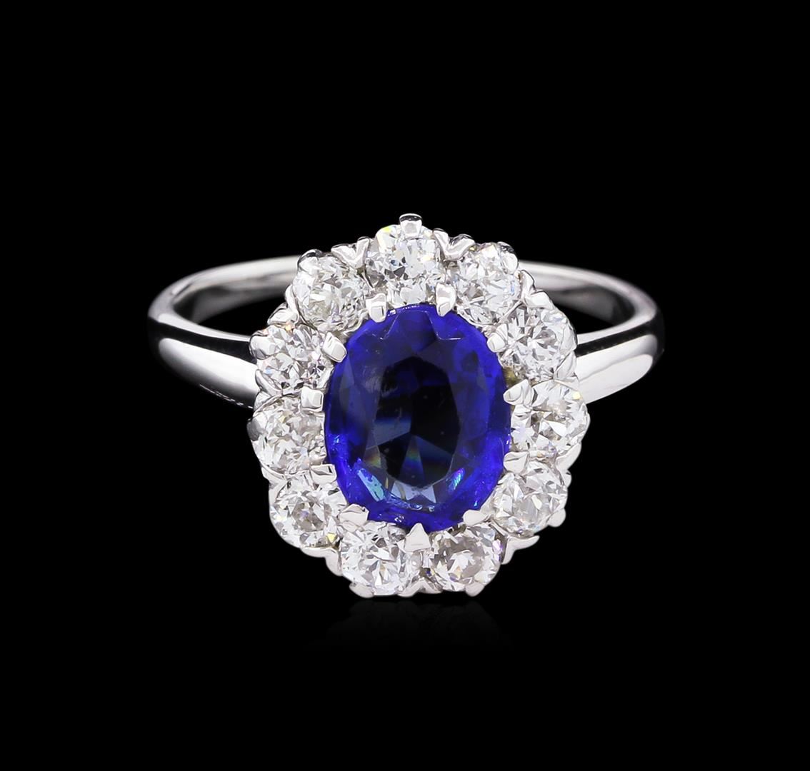 One electronically tested 14KT white gold lady's combination cast & assembled fashion ring with a basket halo with a bright polish finish. The featured lady's ring has a shank measuring 1.35 millimeters wide. Condition is used, good workmanship. Containing: One prong set oval modified mixed cut natural tanzanite, measuring 8.20 x 6.33 x 4.00mm, approximate weight of 1.50ct., clarity is slightly included, type I, medium dark, strong, violetish blue color, (GIA vB 6/5), cut is good. Transmitting light with a minimum of distortion, transparent. Colored gemstones are presumed to have been subjected to commonly used enhancement processes. Graded in the setting. Eleven prong set old mine cut diamonds, measuring 3.00 - 2.80 x 1.80mm (depth est.) approximate total weight of 11 Stones = 1.01ct. Graded in the setting. Clarity: VS-1 to VS-2. Color: G - Good. Total Weight of Colored Stones 1.50ct. Total Weight of Diamonds 1.01ct. Total Weight of Ring 3.90gm. GAS Appraised at $4,885.00.