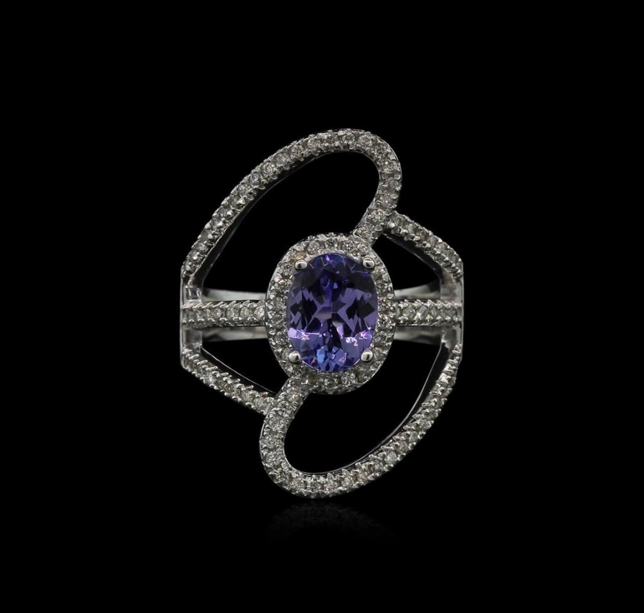 One ring featuring: 14KT white gold weighing 6.41 grams containing one tanzanite with a total weight of 1.50 ct and 96 diamonds with a total weight of 0.40 ct.