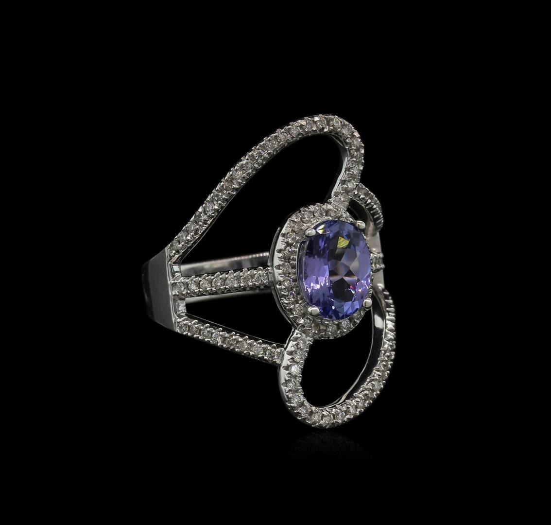 One ring featuring: 14KT white gold weighing 6.41 grams containing one tanzanite with a total weight of 1.50 ct and 96 diamonds with a total weight of 0.40 ct.