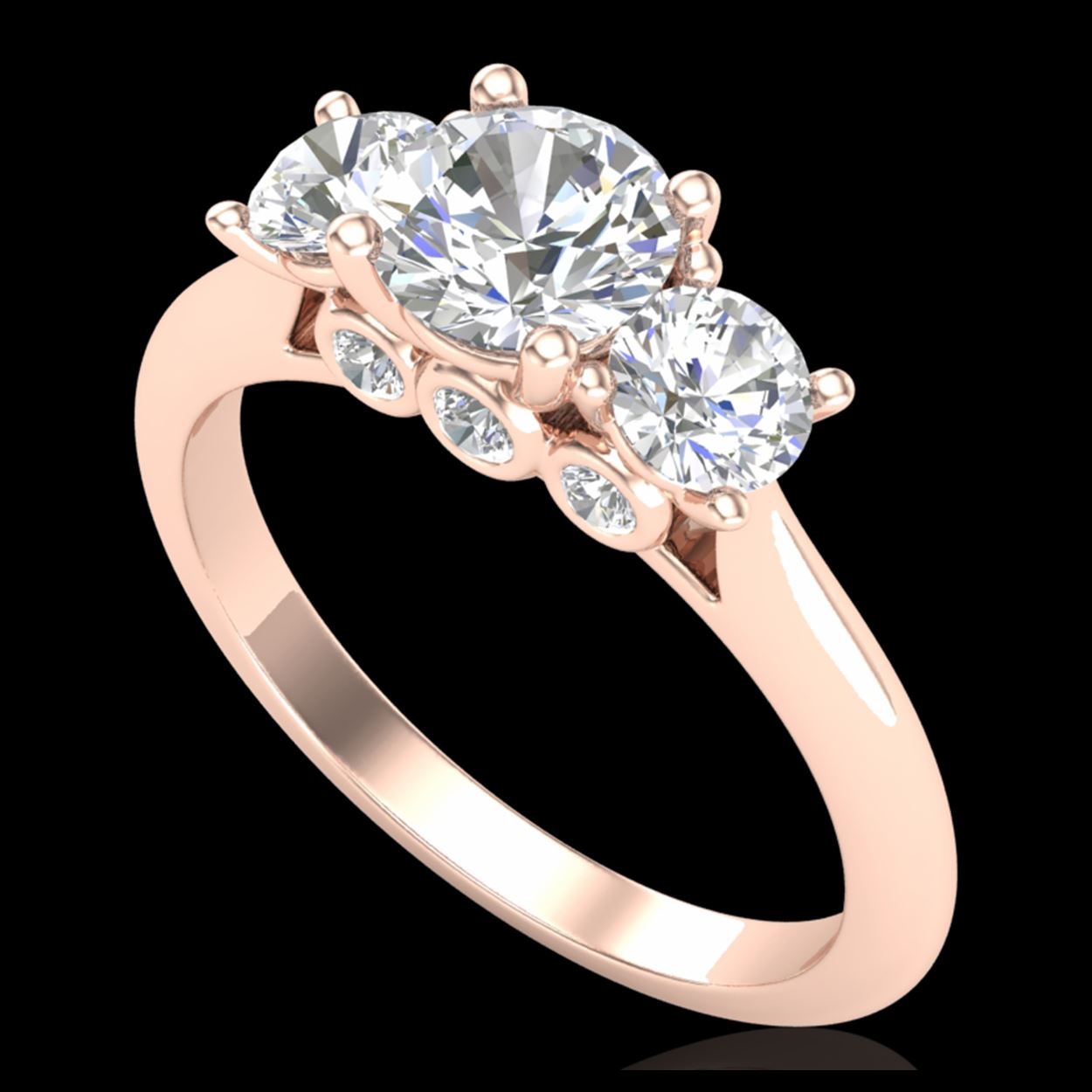 1.50 ctw VS/SI Diamond Solitaire Art Deco 3 Stone Ring 18K Rose Gold