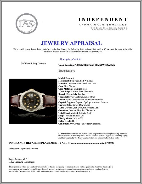 *Dial: Custom Grey DateJust Jeweled Dial