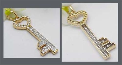 1.50ctw invisible set diamond key pendant, 5.4gr yellow gold