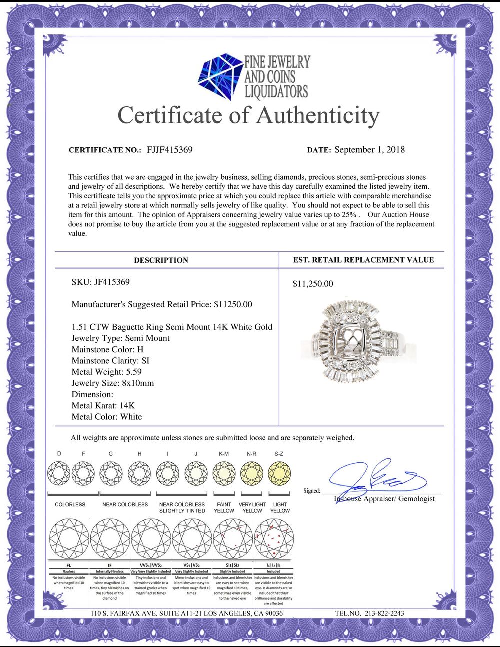 REF-149X2R - JF415369 ---- 1.51 CTW Baguette & Baguette Semi Mount Ring 14K White Gold
