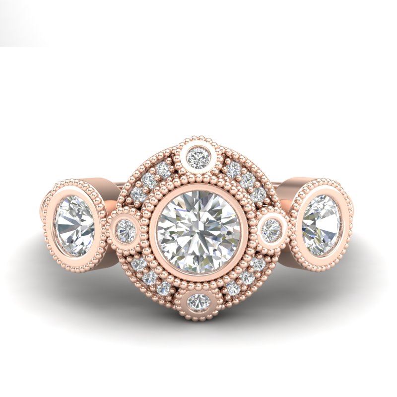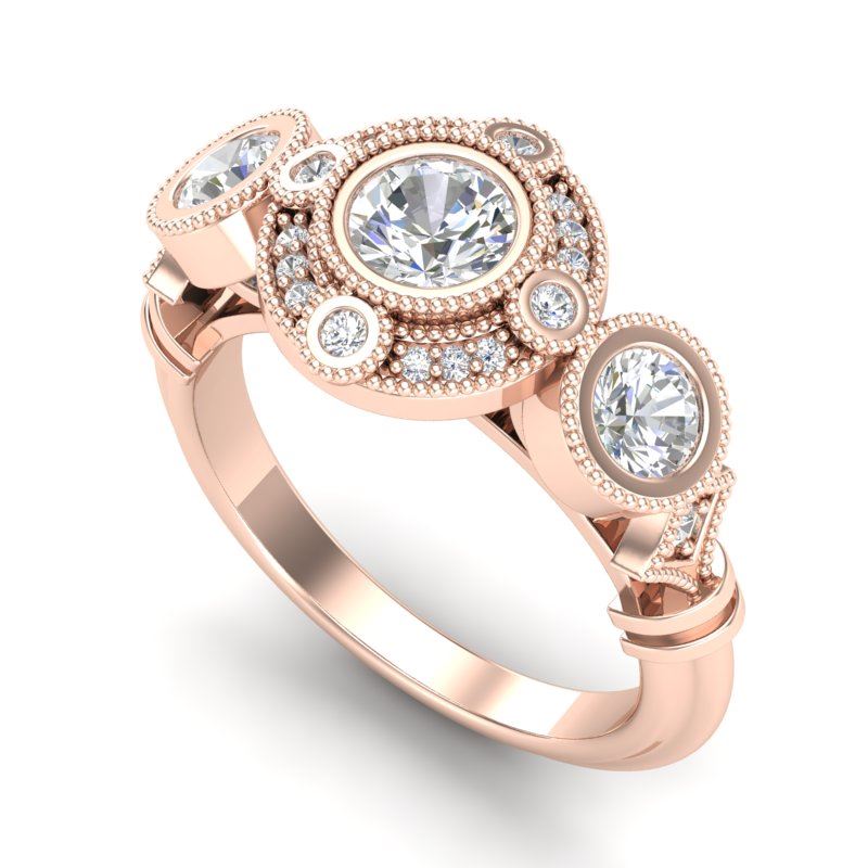 1.51 CTW VS/SI Diamond Solitaire Art Deco 3 Stone Ring 18K Rose Gold ---- Luxury Designer Brand 3 stone ring Appraised Retail Price at $18,150 ---- SKU Number US36987 18k Rose gold 3 stone ring Size is 7, 3 stone ring measuring approx. Uniform, weighing in total approx. 12 grams. Made in the USA and is stamped 18k, Main stone 0.77 carat total weight containing 1 pieces of H-J color with VS/SI quality Round shape cut Diamond , Stone #2 0.52 carat total weight containing 2 pieces of H-I color with VS/SI quality Round shape cut