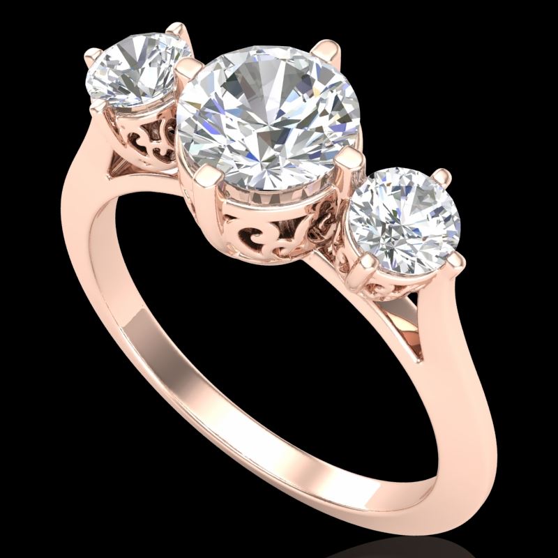 REF-427H3A -37236 ---- 1.51 CTW VS/SI Diamond Solitaire Art Deco 3 Stone Ring 18K Rose Gold ---- Luxury Designer Brand 3 stone ring Appraised at $25,850 Certificate Number US37236 18k Rose gold, 3 stone ring Size is 7, 3 stone ring measuring approx. Uniform, weighing in total approx. 7 grams. Made in the USA and is stamped 18k, Main stone 1 carat total weight containing 1 pieces of H-J color with VS/SI quality Round shape cut Diamond , Stone #2 0.51 carat total weight containing 2 pieces of H-I color with VS/SI quality Round shape cut Diamond