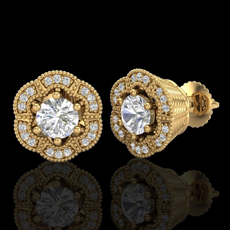 REF-263N6Y -37108 ---- 1.51 CTW VS/SI Diamond Solitaire Art Deco Stud Earrings 18K Yellow Gold ---- Luxury Designer Brand Earring Appraised at $14,500 Certificate Number US37108 18k Yellow gold, Earring Size is Larger, Earring measuring approx. Uniform, weighing in total approx. 8 grams. Made in the USA and is stamped 18k, Main stone 1.2 carat total weight containing 2 pieces of H-J color with VS/SI quality Round shape cut Diamond , Stone #2 0.31 carat total weight containing 36 pieces of H-I color with VS/SI quality Round shape cut Diamond