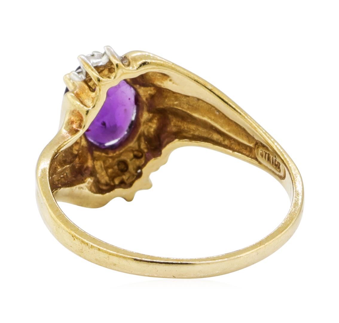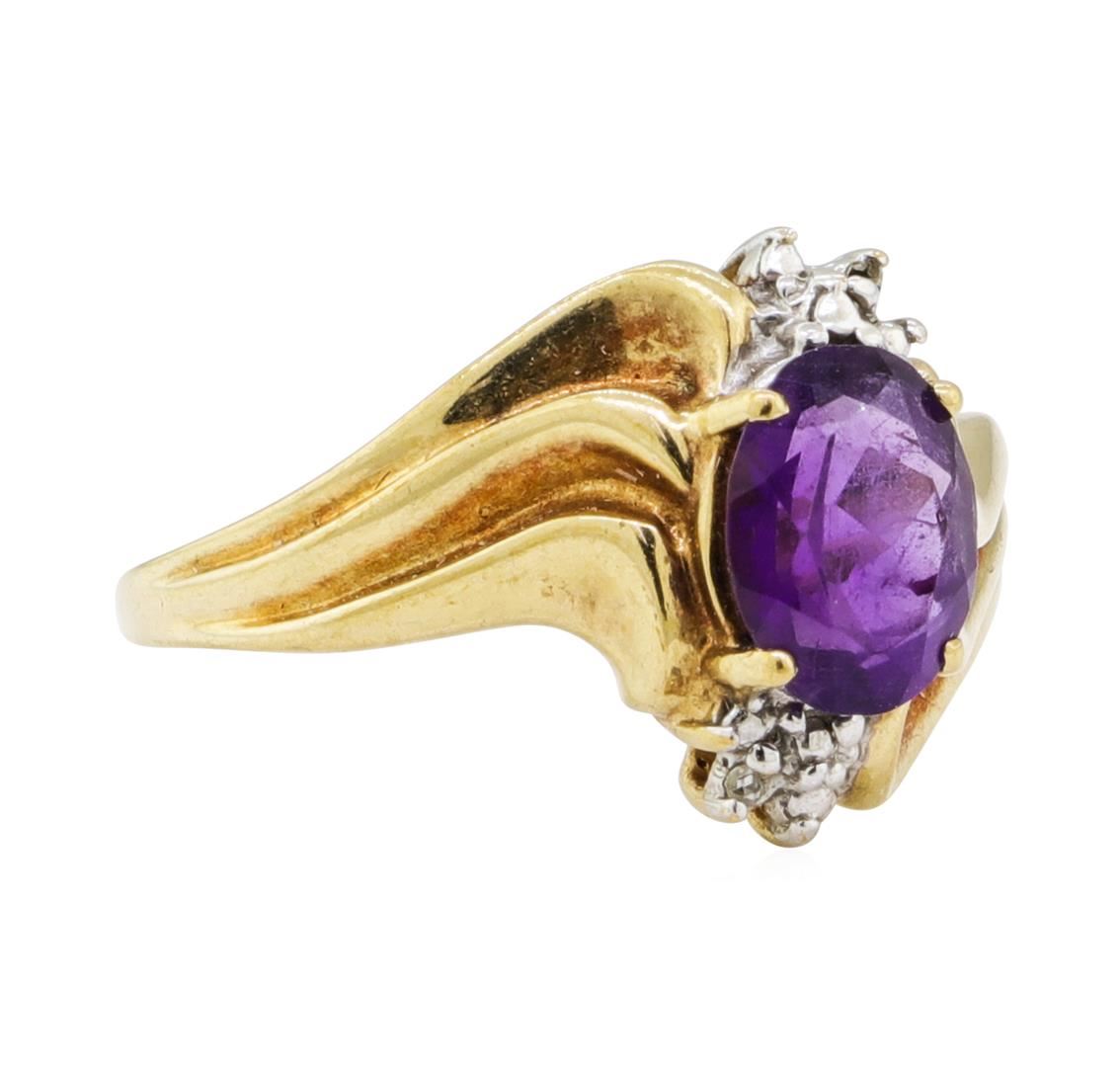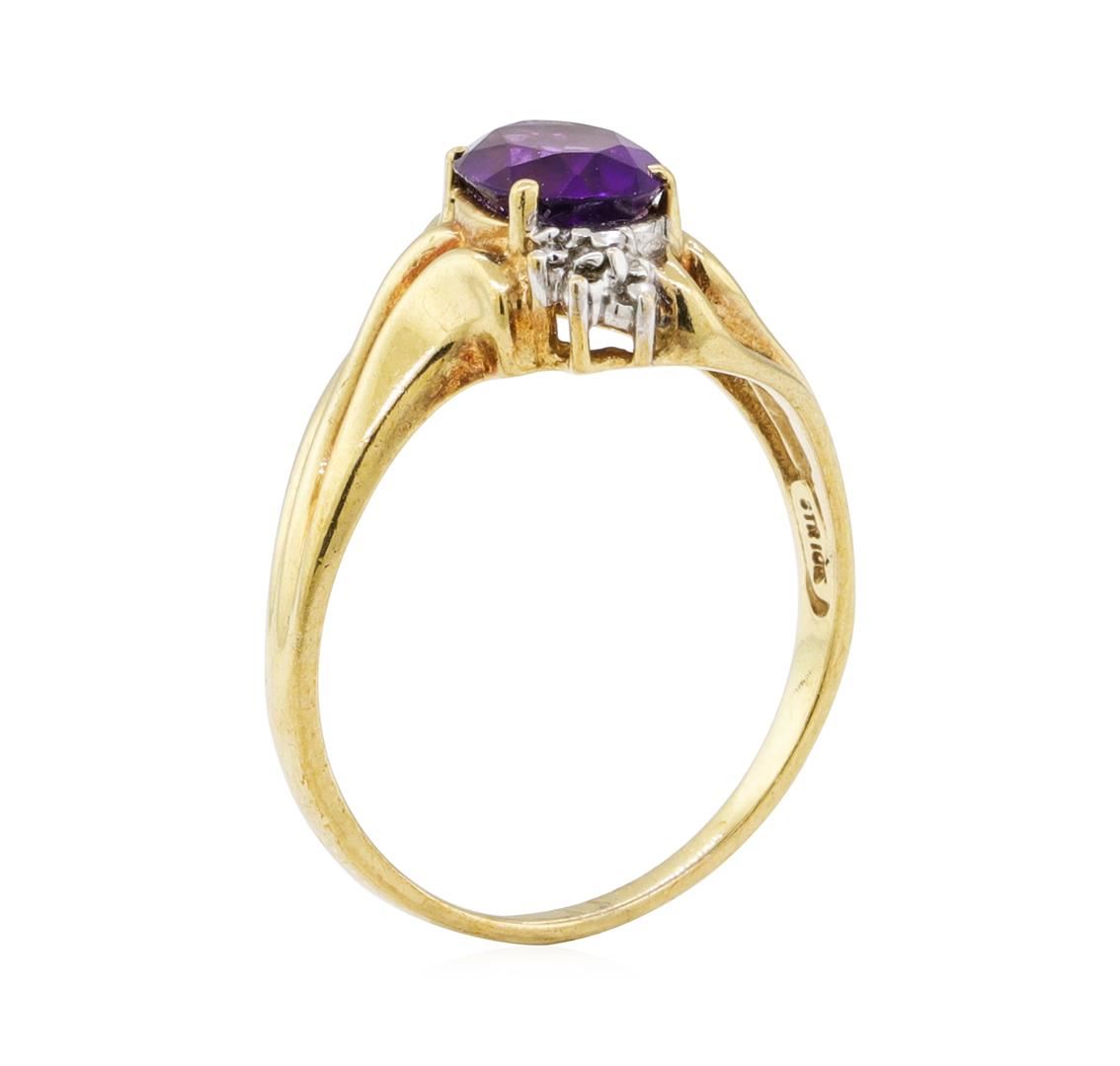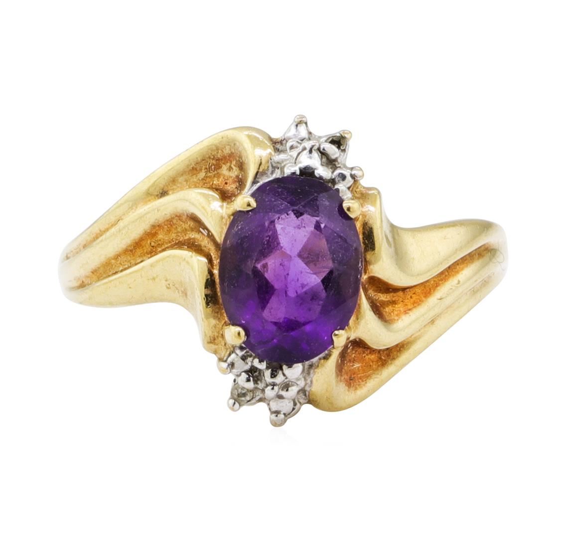 One ring featuring: 10KT yellow gold weighing 2.7 grams containing one amethyst weighing 1.50ct and diamonds weighing 0.01ctw.
