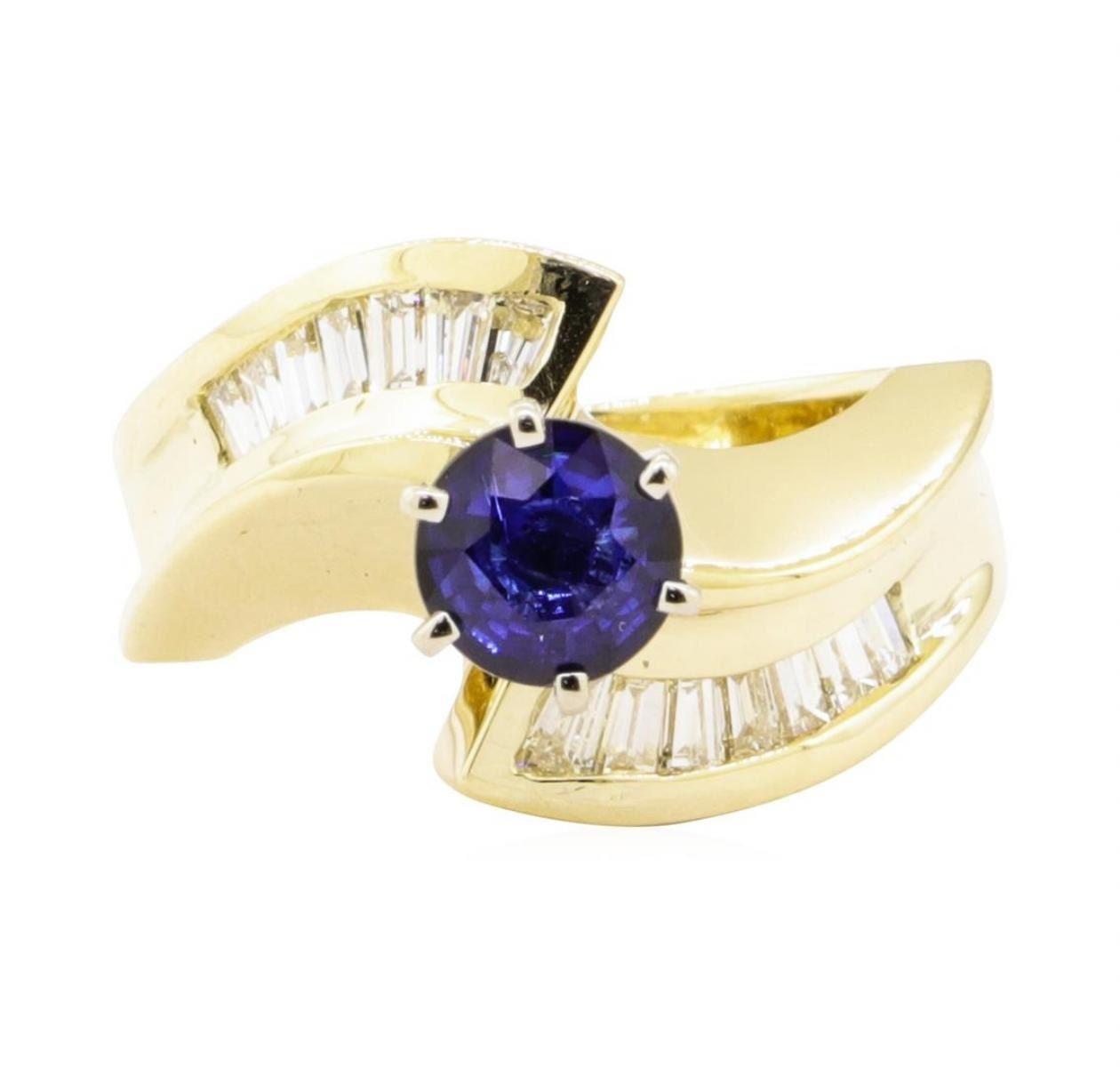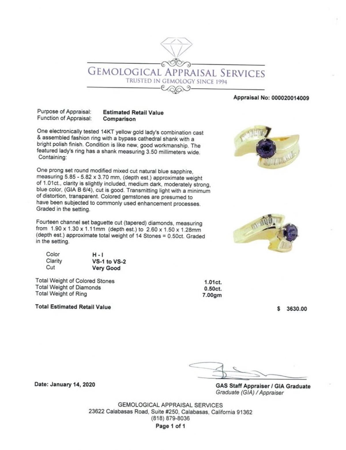 One electronically tested 14KT yellow gold lady's combination cast & assembled fashion ring with a bypass cathedral shank with a bright polish finish. The featured lady's ring has a shank measuring 3.50 millimeters wide. Condition is like new, good workma GAS Appraised at $3,630.00.