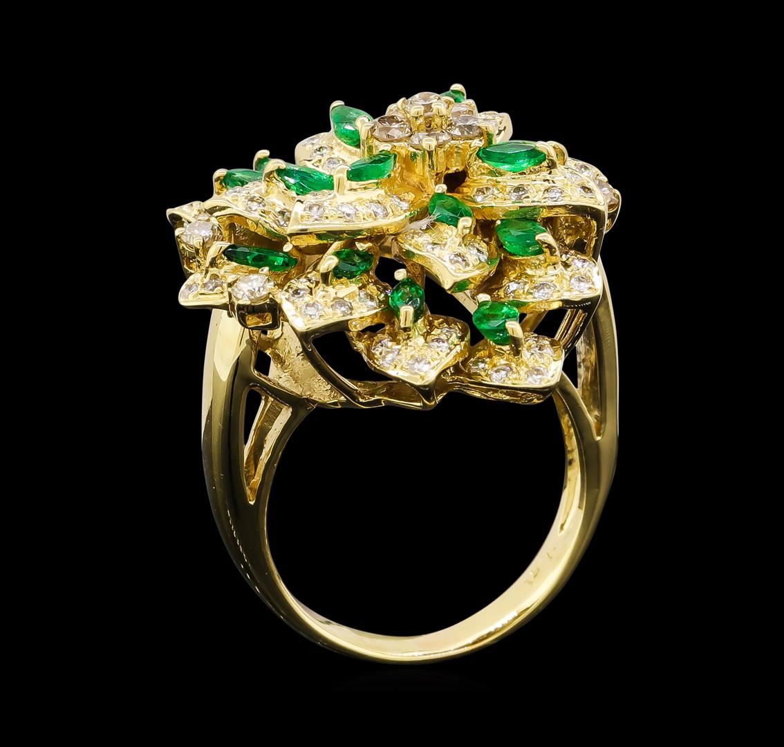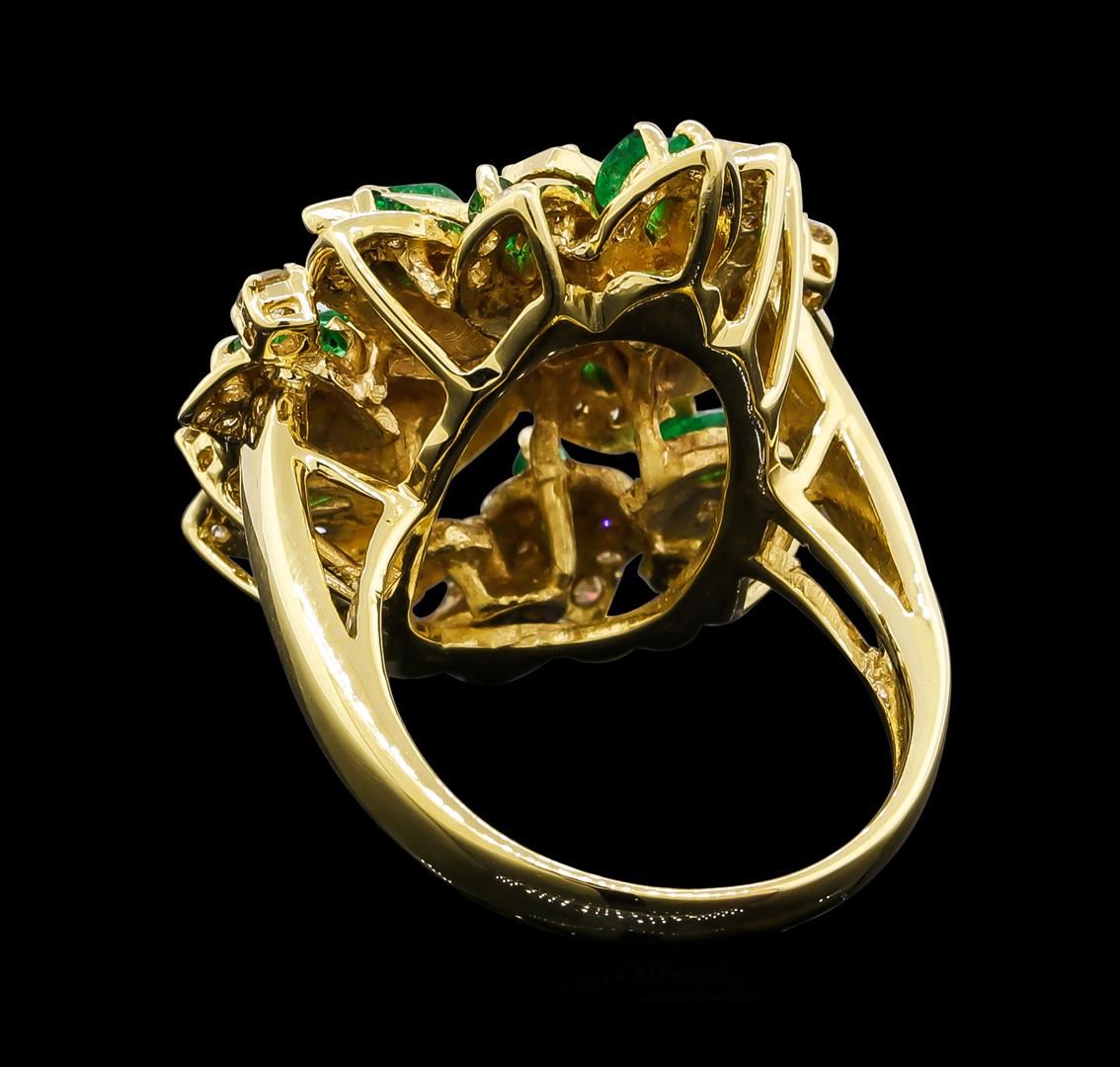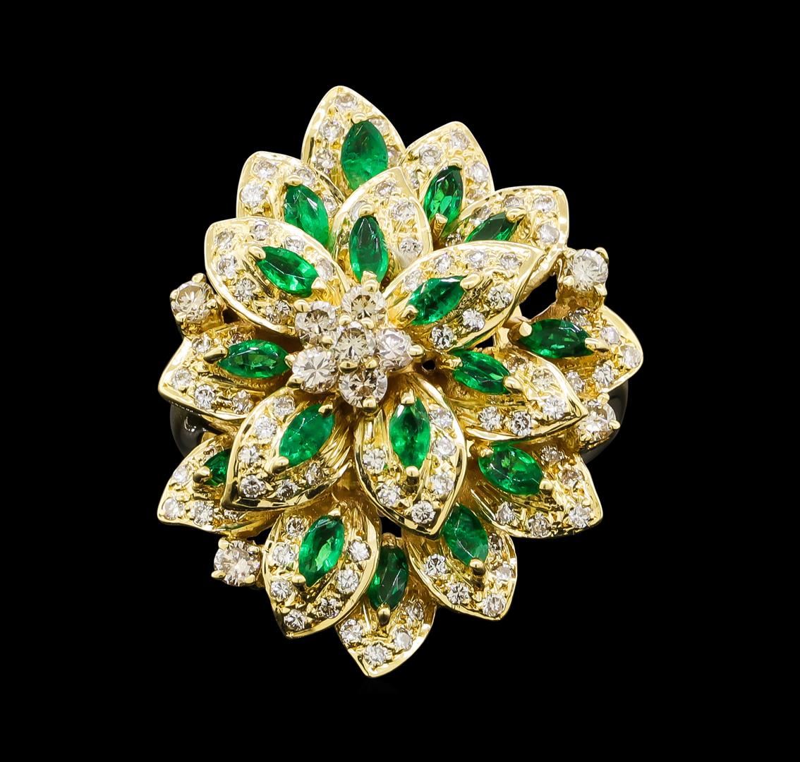 One ring featuring: 18KT Yellow Gold containing Diamonds with a total weight of 1.51ct and Emerald. Total Weight of Ring: 13.8 grams.