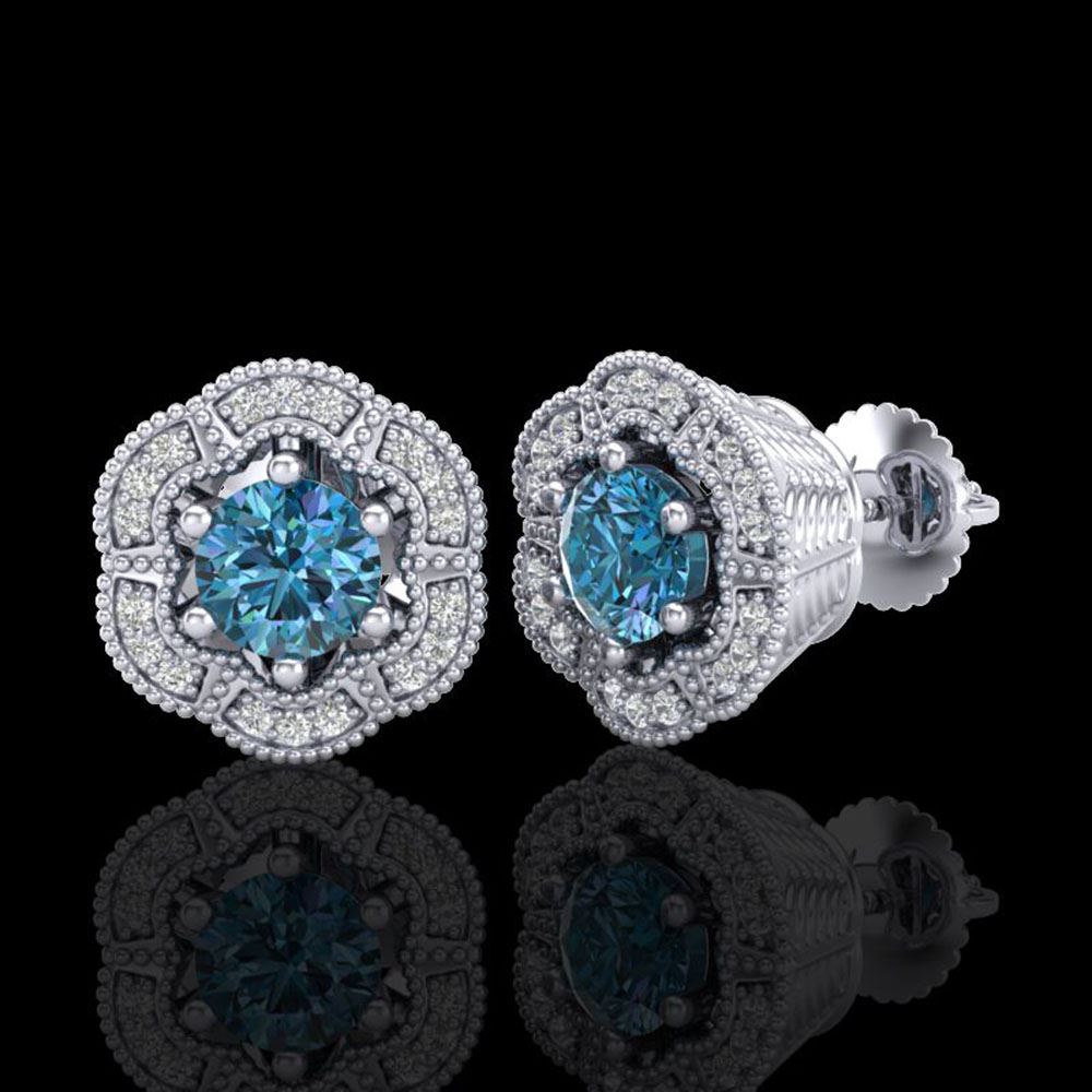 REF-178Y2X - SKU: 37964 ---- 1.51 ctw Fancy Intense Blue Diamond Art Deco Earrings 18k White Gold