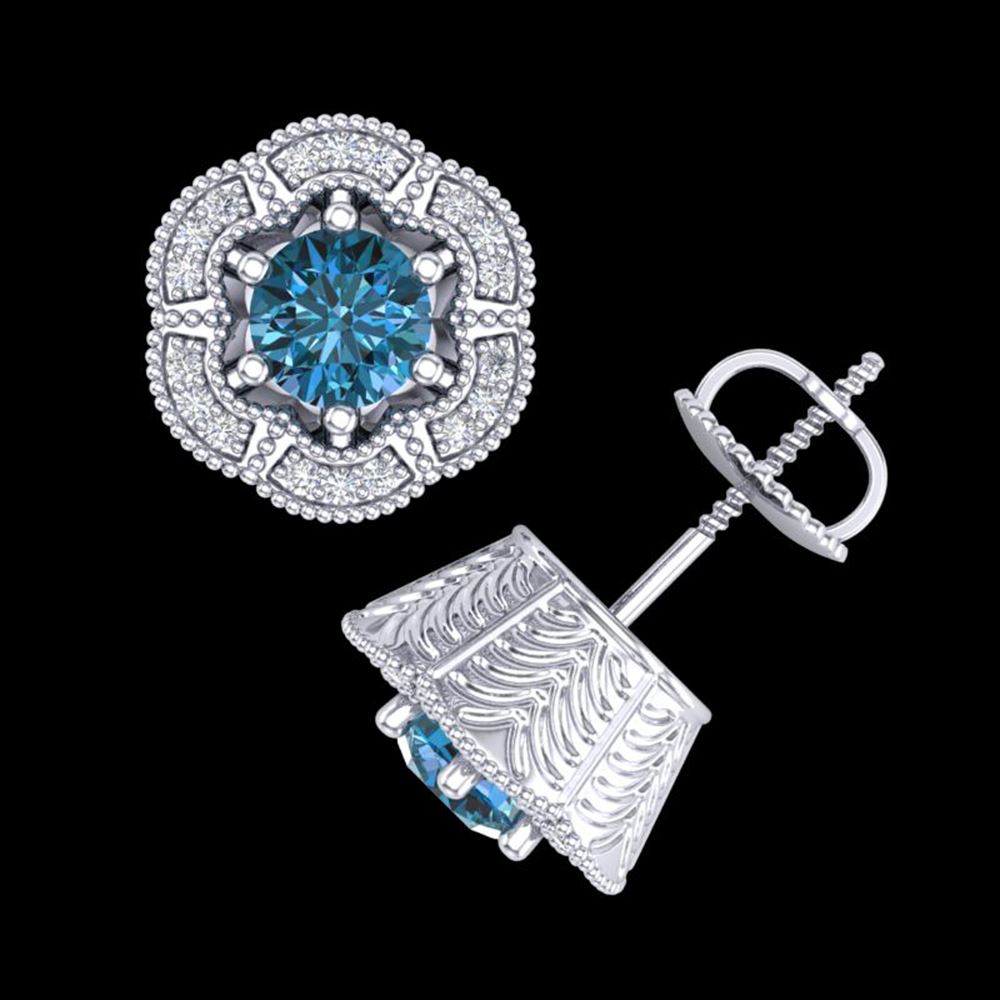 REF-178Y2X - SKU: 37964 ---- 1.51 ctw Fancy Intense Blue Diamond Art Deco Earrings 18k White Gold
