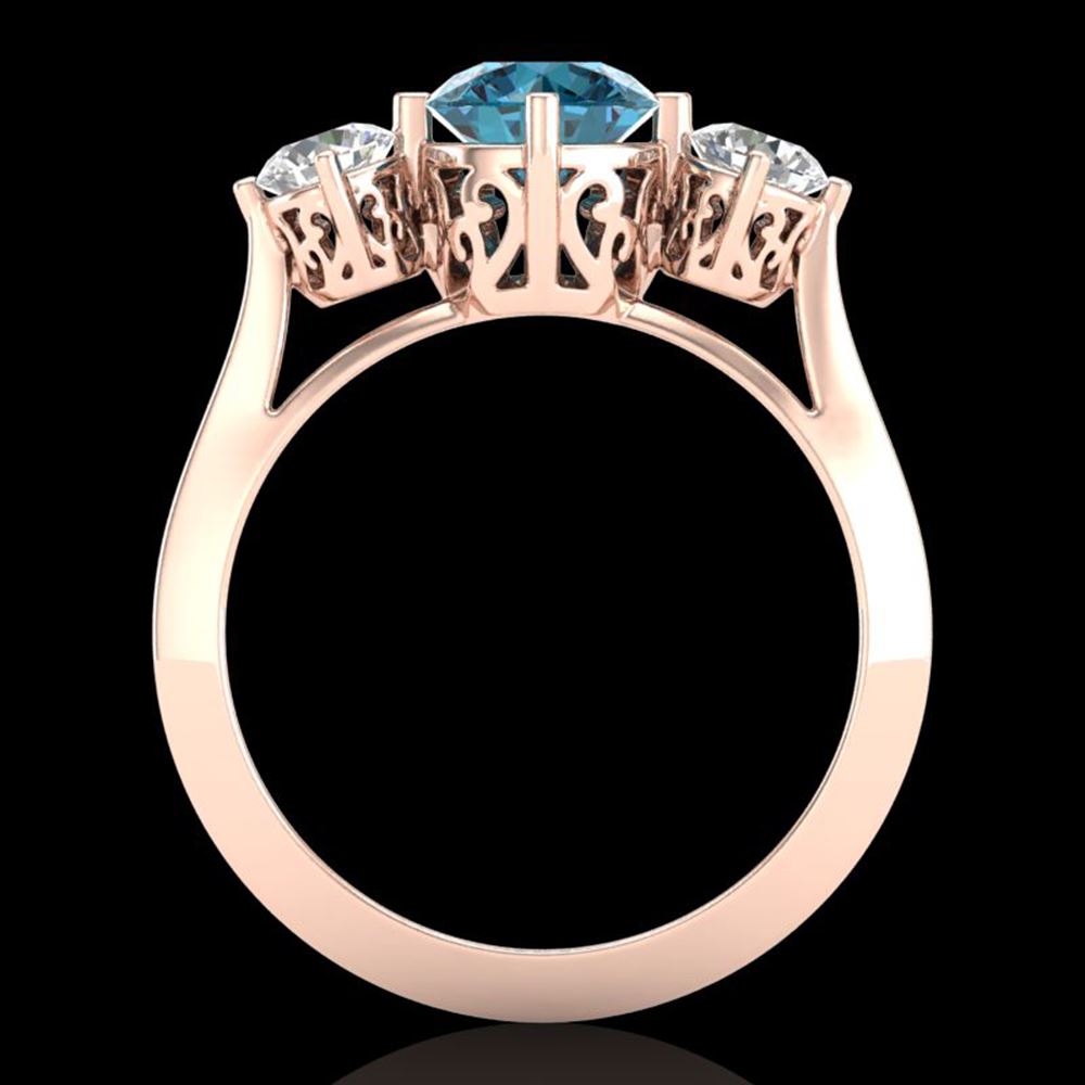 REF-236G4W - SKU: 38084 ---- 1.51 ctw Intense Blue Diamond Art Deco 3 Stone Ring 18k Rose Gold